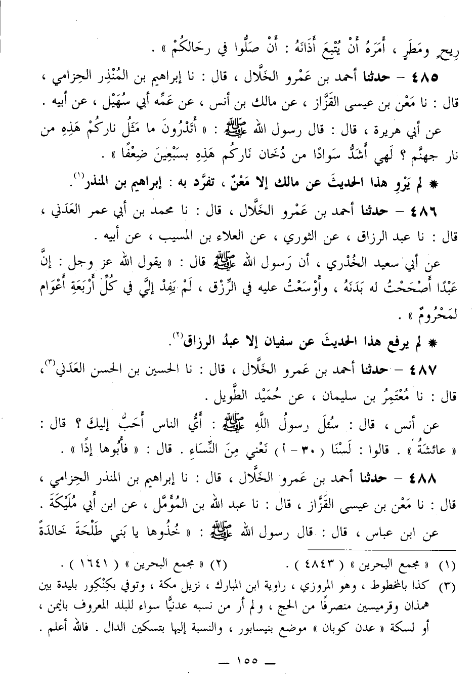 486 - حَدَّثَنَا أَحْمَدُ بْنُ عَمْرٍو الْخَلَّالُ قَالَ: نا مُحَمَّدُ بْنُ أَبِي عُمَرَ الْعَدَنِيُّ قَالَ: نا عَبْدُ الرَّزَّاقِ، عَنِ الثَّوْرِيِّ، عَنِ الْعَلَاءِ بْنِ الْمُسَيَّبِ، عَنْ أَبِيهِ، عَنْ أَبِي سَعِيدٍ الْخُدْرِيِّ، أَنَّ رَسُولَ اللَّهِ صَلَّى اللهُ عَلَيْهِ وَسَلَّمَ قَالَ: «يَقُولُ اللَّهُ عَزَّ وَجَلَّ: إِنَّ §عَبْدًا أَصْحَحْتُ لَهُ بُدْنَهُ، وأَوْسَعْتُ عَلَيْهِ فِي الرِّزْقِ، لَمْ يَفِدْ إِلَيَّ فِي كُلِّ أَرْبَعَةِ أَعْوَامٍ لمَحْرُومٌ» لَمْ يَرْفَعْ هَذَا الْحَدِيثَ عَنْ سُفْيَانَ إِلَّا عَبْدُ الرَّزَّاقِ