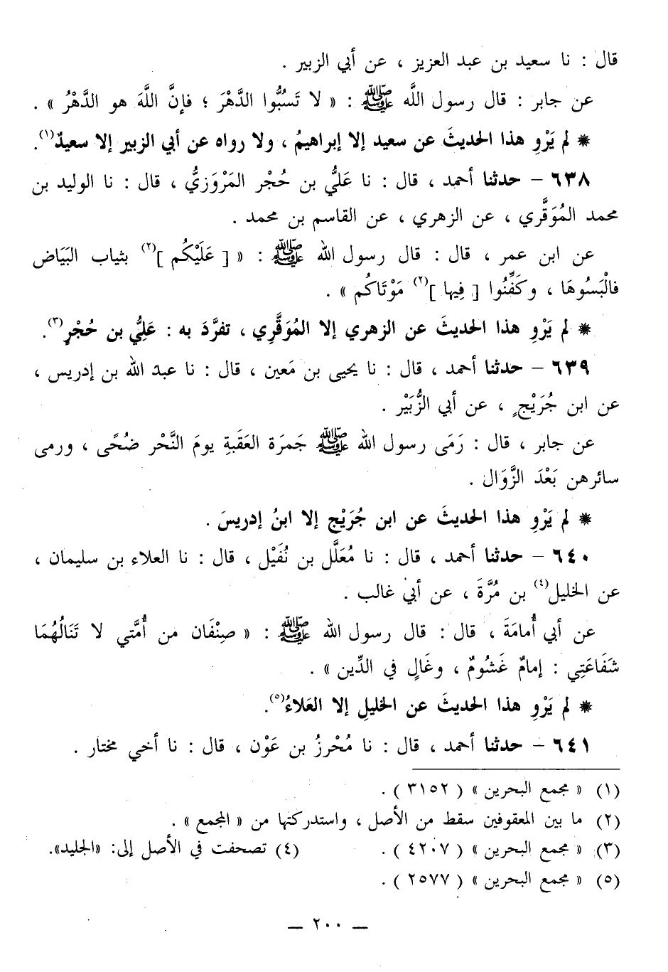 639 - حَدَّثَنَا أَحْمَدُ قَالَ: نا يَحْيَى بْنُ مَعِينٍ قَالَ: نا عَبْدُ اللَّهِ بْنُ إِدْرِيسَ، عَنِ ابْنِ جُرَيجٍ، عَنْ أَبِي الزُّبَيْرِ، عَنْ جَابِرٍ قَالَ: «§رَمَى رَسُولُ اللَّهِ صَلَّى اللهُ عَلَيْهِ وَسَلَّمَ جَمْرَةَ الْعَقَبَةِ يَوْمَ النَّحْرِ ضُحًى، وَرَمَى سَائِرَهُنَّ بَعْدَ الزَّوَالِ»