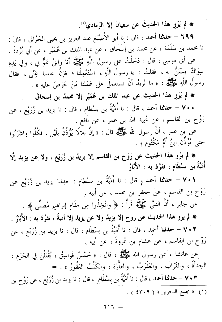 لَمْ يَرْوِ هَذَا الْحَدِيثَ عَنْ رَوْحِ بْنِ الْقَاسِمِ إِلَّا يَزِيدُ بْنُ زُرَيْعٍ، وَلَا عَنْ يَزِيدَ إِلَّا أُمَيَّةُ بْنُ بِسْطَامٍ، تَفَرَّدَ بِهِ: الْأَبَّارُ