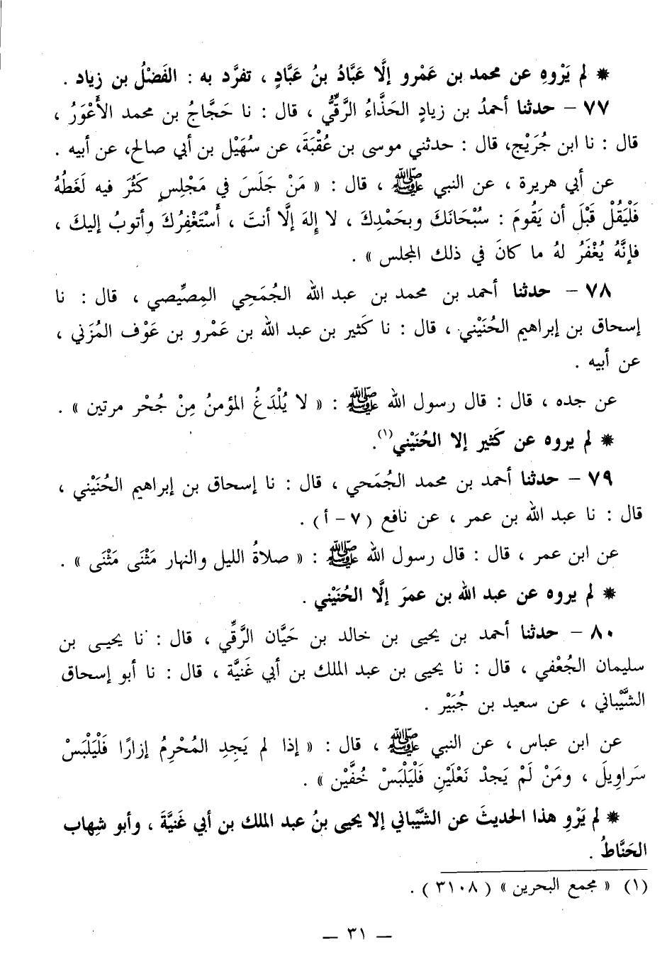 77 - حَدَّثَنَا أَحْمَدُ بْنُ زِيَادٍ الْحَذَّاءُ الرَّقِّيُّ قَالَ: نا حَجَّاجُ بْنُ مُحَمَّدٍ الْأَعْوَرُ قَالَ: نا ابْنُ جُرَيْجٍ قَالَ: حَدَّثَنِي مُوسَى بْنُ عُقْبَةَ، عَنْ سُهَيْلِ بْنِ أَبِي صَالِحٍ، عَنْ أَبِيهِ، عَنْ أَبِي هُرَيْرَةَ، عَنِ النَّبِيِّ صَلَّى اللهُ عَلَيْهِ وَسَلَّمَ قَالَ: «§مَنْ جَلَسَ فِي مَجْلِسٍ كَثُرَ فِيهِ لَغَطُهُ فَلْيَقُلْ قَبْلَ أَنْ يَقُومَ: سُبْحَانَكَ وَبِحَمْدِكَ، لَا إِلَهَ إِلَّا أَنْتَ، أَسْتَغْفِرُكَ وَأَتُوبُ إِلَيْكَ، فَإِنَّهُ يُغْفَرُ لَهُ مَا كَانَ فِي ذَلِكَ الْمَجْلِسِ»