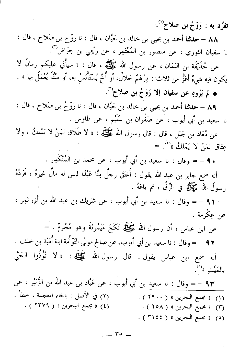 لَمْ يَرْوِ هَذِهِ الْأَحَادِيثَ عَنْ سَعِيدِ بْنِ أَبِي أَيُّوبَ إِلَّا رَوْحُ بْنُ صَلَاحٍ
