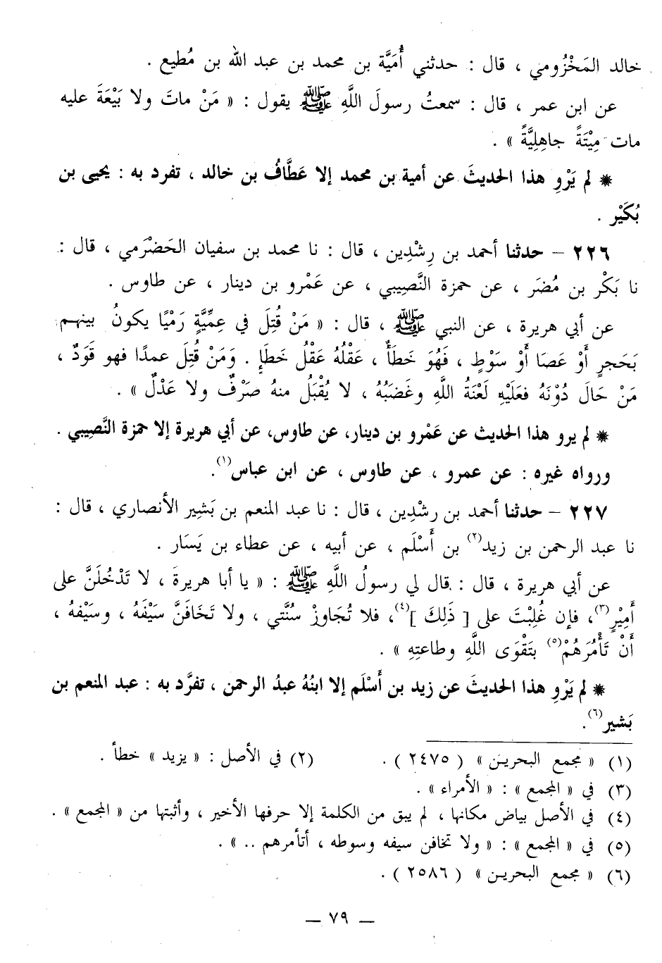226 - حَدَّثَنَا أَحْمَدُ بْنُ رِشْدِينَ قَالَ: نا مُحَمَّدُ بْنُ سُفْيَانَ الْحَضْرَمِيُّ قَالَ: نا بَكْرُ بْنُ مُضَرَ، عَنْ حَمْزَةَ النَّصِيبِيِّ، عَنْ عَمْرِو بْنِ دِينَارٍ، عَنْ طَاوُسَ، عَنْ أَبِي هُرَيْرَةَ، عَنِ النَّبِيِّ صَلَّى اللهُ عَلَيْهِ وَسَلَّمَ قَالَ: «§مَنْ قُتِلَ فِي عِمِّيَّةٍ رَمْيًا يَكُونُ بَيْنَهُمْ، بِحَجَرٍ، أَوْ عَصَا، أَوْ سَوْطٍ، فَهُوَ خَطَأٌ، عَقْلُهُ عَقْلُ خَطَإٍ. وَمَنْ قُتِلَ عَمْدًا فَهُوَ قَوَدٌ، مَنْ حَالَ دُونَهُ، فَعَلَيْهِ لَعْنَةُ اللَّهِ وَغَضَبُهُ، لَا يُقْبَلُ مِنْهُ صَرْفٌ وَلَا عَدْلٌ»