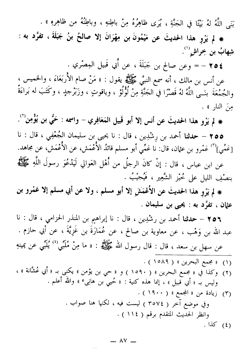 255 - حَدَّثَنَا أَحْمَدُ بْنُ رِشْدِينَ قَالَ: نا يَحْيَى بْنُ سُلَيْمَانَ الْجُعْفِيُّ قَالَ: نا عَمِّي عَمْرُو بْنُ عُثْمَانَ قَالَ: نا عَمِّي أَبُو مُسْلِمٍ، قَائِدُ الْأَعْمَشِ، عَنِ الْأَعْمَشِ، عَنْ مُجَاهِدٍ، عَنِ ابْنِ عَبَّاسٍ قَالَ: «إِنْ كَانَ §الرَّجُلُ مِنْ أَهْلِ الْعَوَالِي لَيَدْعُو رَسُولَ اللَّهِ صَلَّى اللهُ عَلَيْهِ وَسَلَّمَ بِنِصْفِ اللَّيْلِ عَلَى خُبْزِ الشَّعِيرِ، فَيُجِيبُ»