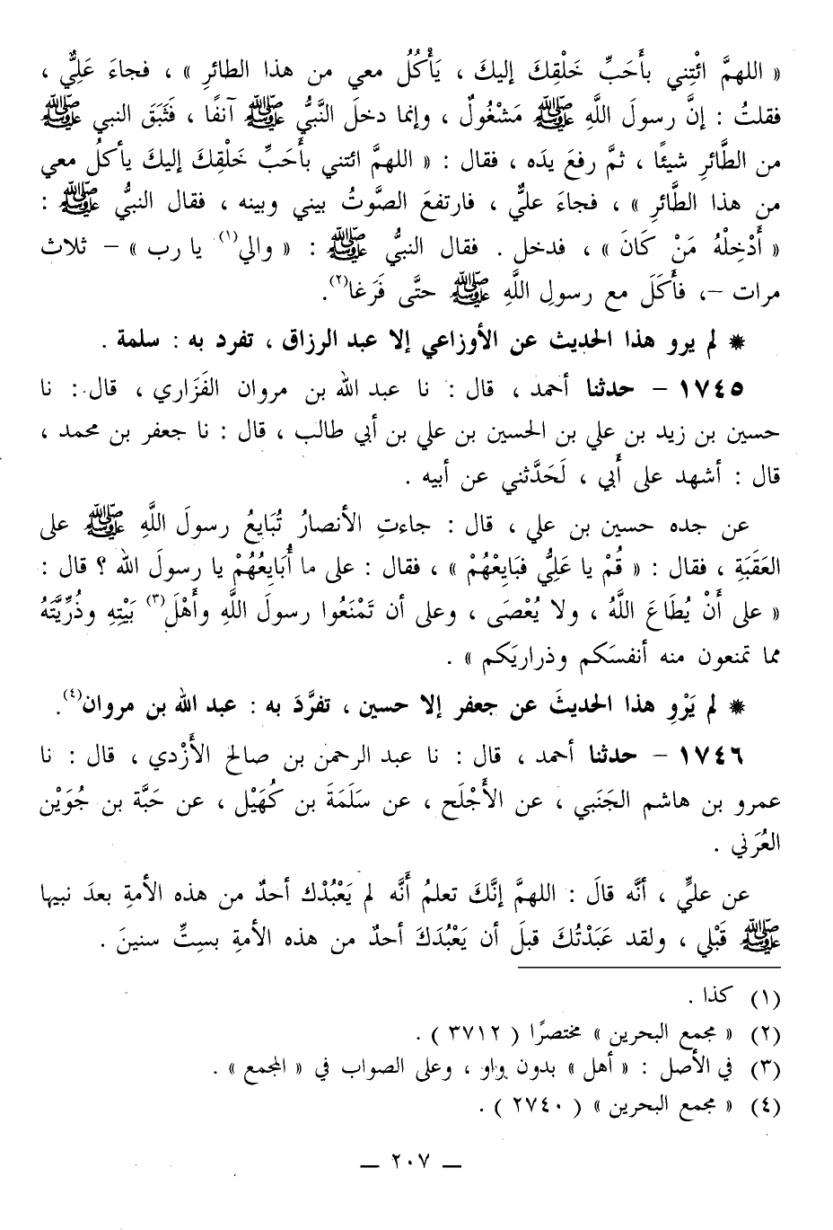 1745 - حَدَّثَنَا أَحْمَدُ قَالَ: نا عَبْدُ اللَّهِ بْنُ مَرْوَانَ الْفَزَارِيُّ قَالَ: نا حُسَيْنُ بْنُ زَيْدِ بْنِ عَلِيِّ بْنِ الْحُسَيْنِ بْنِ عَلِيِّ بْنِ أَبِي طَالِبٍ قَالَ: نا جَعْفَرُ بْنُ مُحَمَّدٍ قَالَ: أَشْهَدُ عَلَى أَبِي، لَحَدَّثَنِي عَنْ أَبِيهِ، عَنْ جَدِّهِ حُسَيْنِ بْنِ عَلِيٍّ قَالَ: جَاءَتِ الْأَنْصَارُ تُبَايِعُ رَسُولَ اللَّهِ صَلَّى اللهُ عَلَيْهِ وَسَلَّمَ عَلَى الْعَقَبَةِ، فَقَالَ: «قُمْ يَا عَلِيُّ فَبَايِعْهُمْ» ، فَقَالَ: عَلَى مَا أُبَايِعُهُمْ يَا رَسُولَ اللَّهِ؟ قَالَ: «§عَلَى أَنْ يُطَاعَ اللَّهُ، وَلَا يُعْصَى، وَعَلَى أَنْ تَمْنَعُوا رَسُولَ اللَّهِ وَأَهْلَ بَيْتِهِ وَذُرِّيَّتَهُ مِمَّا تَمْنَعُونَ مِنْهُ أَنْفُسَكُمْ وَذَرَارِيَكُمْ»
