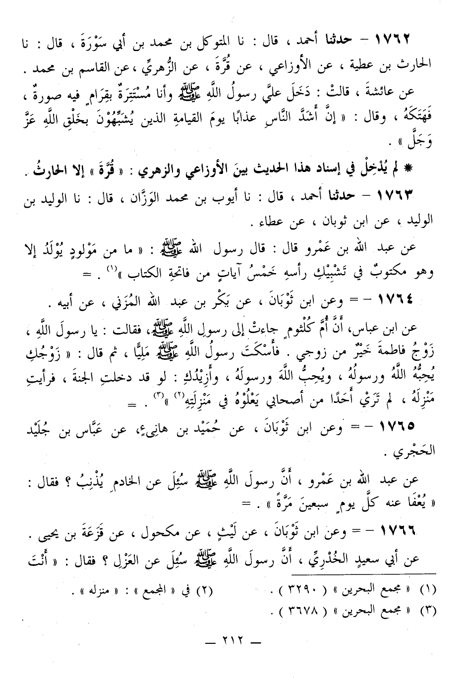 1765 - وَعَنِ ابْنِ ثَوْبَانَ، عَنْ حُمَيْدِ بْنِ هَانِئٍ، عَنْ عَبَّاسِ بْنِ خُلَيْدٍ الْحَجْرِيِّ، عَنْ عَبْدِ اللَّهِ بْنِ عَمْرٍو، أَنَّ رَسُولَ اللَّهِ صَلَّى اللهُ عَلَيْهِ وَسَلَّمَ سُئِلَ عَنِ الْخَادِمِ يُذْنِبُ؟ فَقَالَ: «§يُعْفَى عَنْهُ كُلَّ يَوْمٍ سَبْعِينَ مَرَّةً»