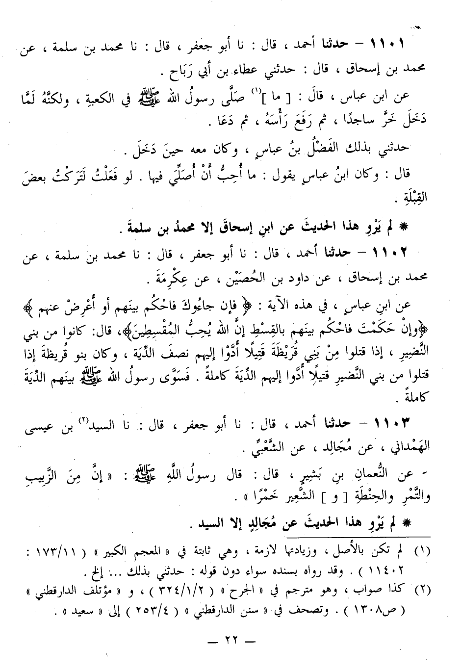 1102 - حَدَّثَنَا أَحْمَدُ قَالَ: نا أَبُو جَعْفَرٍ قَالَ: نا مُحَمَّدُ بْنُ سَلَمَةَ، عَنْ مُحَمَّدِ بْنِ إِسْحَاقَ، عَنْ دَاوُدَ بْنِ الْحُصَيْنِ، عَنْ عِكْرِمَةَ، عَنِ ابْنِ عَبَّاسٍ فِي هَذِهِ الْآيَةِ: {فَإِنْ جَاءُوكَ فَاحْكُمْ بَيْنَهُمْ أَوْ أَعْرِضْ عَنْهُمْ} ، {وَإِنْ حَكَمْتَ فَاحْكُمْ بَيْنَهُمْ بِالْقِسْطِ إِنَّ اللَّهَ يُحِبُّ الْمُقْسِطِينَ} [المائدة: 42] قَالَ: «§كَانُوا مِنْ بَنِي النَّضِيرِ، إِذَا قَتَلُوا مِنْ بَنِي قُرَيْظَةَ قَتِيلًا أَدَّوْا إِلَيْهِمْ نِصْفَ الدِّيَةِ، وَكَانَ بَنُو قُرَيْظَةَ إِذَا قَتَلُوا مِنْ بَنِي النَّضِيرِ قَتِيلًا أَدَّوْا إِلَيْهِمُ الدِّيَةَ كَامِلَةً، فَسَوَّى رَسُولُ اللَّهِ صَلَّى اللهُ عَلَيْهِ وَسَلَّمَ بَيْنَهُمُ الدِّيَةَ كَامِلَةً»