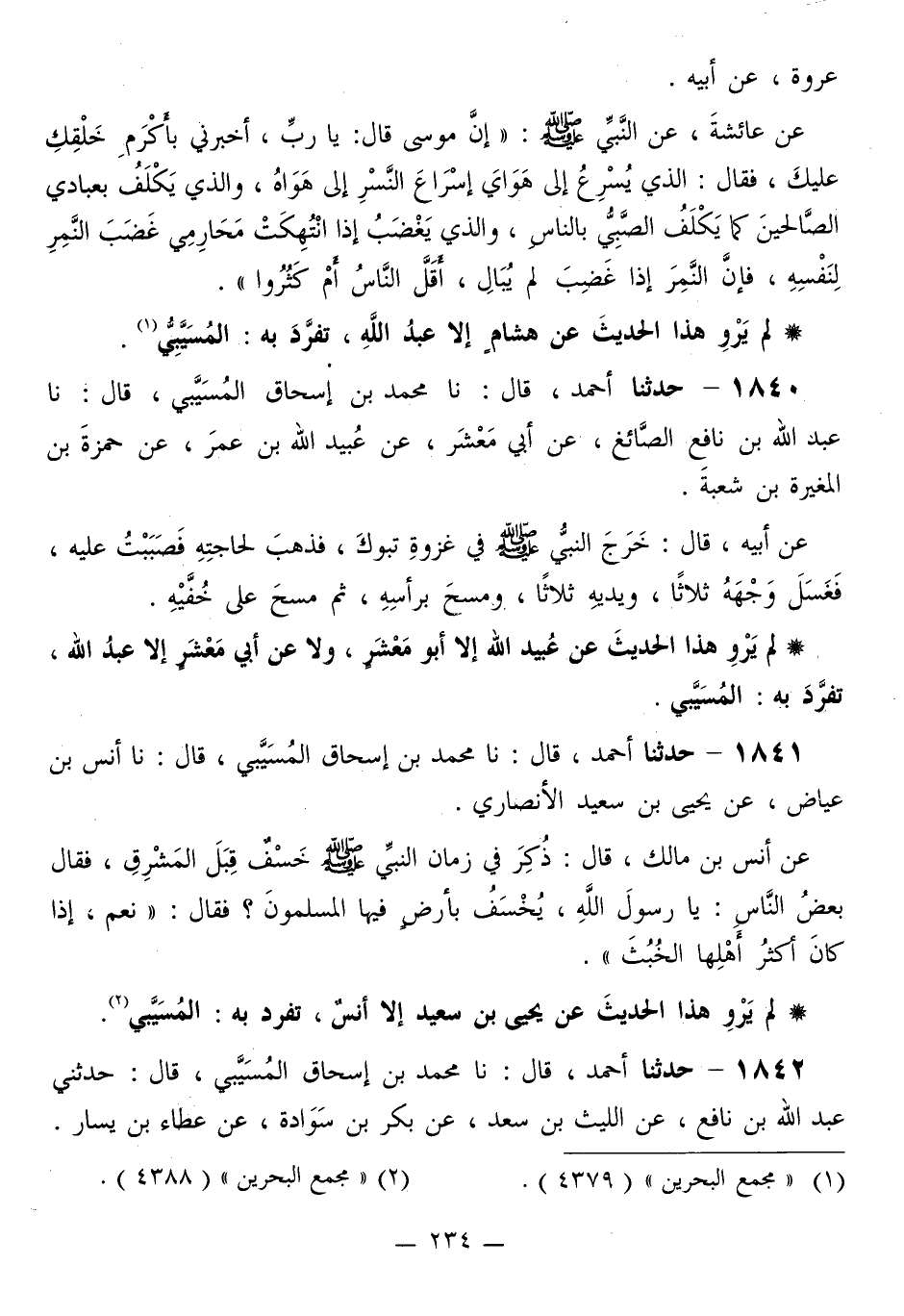 1841 - حَدَّثَنَا أَحْمَدُ قَالَ: نا مُحَمَّدُ بْنُ إِسْحَاقَ الْمُسَيَّبِيُّ قَالَ: نا أَنَسُ بْنُ عِيَاضٍ، عَنْ يَحْيَى بْنِ سَعِيدٍ الْأَنْصَارِيِّ، عَنْ أَنَسِ بْنِ مَالِكٍ قَالَ: ذُكِرَ فِي زَمَانِ النَّبِيِّ صَلَّى اللهُ عَلَيْهِ وَسَلَّمَ خَسْفٌ قِبَلَ الْمَشْرِقِ، فَقَالَ بَعْضُ النَّاسِ: يَا رَسُولَ اللَّهِ، §يُخْسَفُ بِأَرْضٍ فِيهَا الْمُسْلِمُونَ؟ فَقَالَ: «نَعَمْ، إِذَا كَانَ أَكْثَرُ أَهْلِهَا الْخُبُثَ»