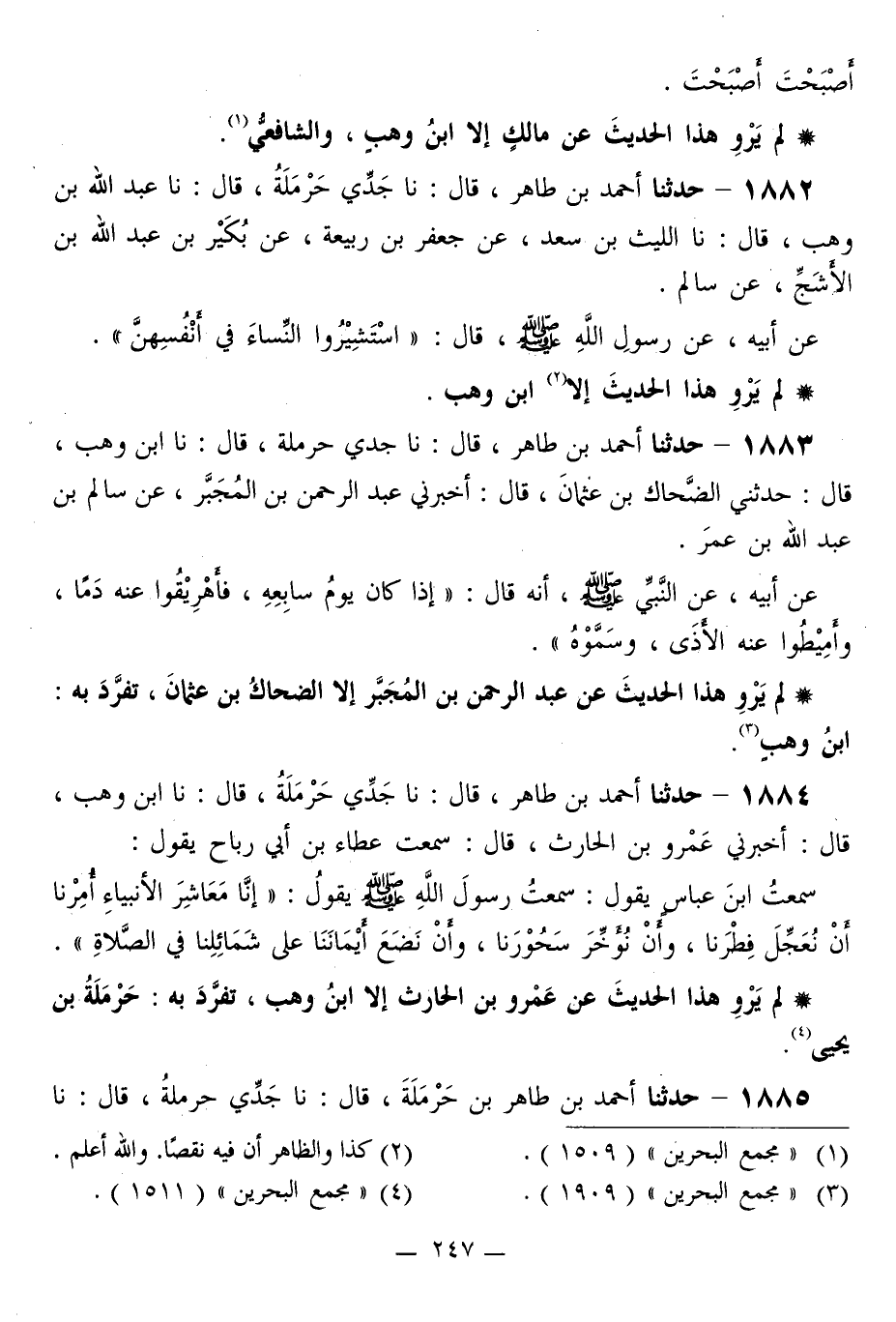 لَمْ يَرْوِ هَذَا الْحَدِيثَ عَنْ عَمْرِو بْنِ الْحَارِثِ إِلَّا ابْنُ وَهْبٍ، تَفَرَّدَ بِهِ: حَرْمَلَةُ بْنُ يَحْيَى "