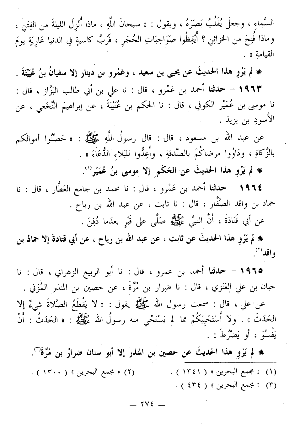 1963 - حَدَّثَنَا أَحْمَدُ بْنُ عَمْرٍو قَالَ: نا عَلِيُّ بْنُ أَبِي طَالِبٍ الْبَزَّازُ قَالَ: نا مُوسَى بْنُ عُمَيْرٍ الْكُوفِيُّ قَالَ: نا الْحَكَمُ بْنُ عُتَيْبَةَ، عَنْ إِبْرَاهِيمَ النَّخَعِيِّ، عَنِ الْأَسْوَدِ بْنِ يَزِيدَ، عَنْ عَبْدِ اللَّهِ بْنِ مَسْعُودٍ قَالَ: قَالَ رَسُولُ اللَّهِ صَلَّى اللهُ عَلَيْهِ وَسَلَّمَ: «§حَصِّنُوا أَمْوَالَكُمْ بِالزَّكَاةِ، وَدَاوُوا مَرْضَاكُمْ بِالصَّدَقَةِ، وَأَعِدُّوا لِلْبَلَاءِ الدُّعَاءَ»
