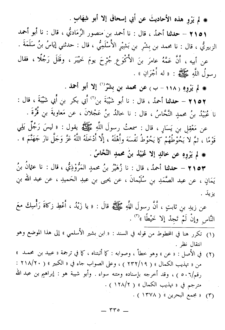 2153 - حَدَّثَنَا أَحْمَدُ قَالَ: نا زُهَيْرُ بْنُ مُحَمَّدٍ الْمَرُّوذِيُّ قَالَ: نا عُثْمَانُ بْنُ يَمَانٍ، عَنْ عَبْدِ الصَّمَدِ بْنِ سُلَيْمَانَ، عَنْ عَبْدِ الْحَمِيدِ بْنِ يَحْيَى، عَنْ عَبْدِ اللَّهِ بْنِ يَزِيدَ، عَنْ زَيْدِ بْنِ ثَابِتٍ، أَنَّ رَسُولَ اللَّهِ صَلَّى اللهُ عَلَيْهِ وَسَلَّمَ قَالَ: «يَا زَيْدُ، §أَعْطِ زَكَاةَ رَأْسِكَ مَعَ النَّاسِ وَإِنْ لَمْ تَجِدْ إِلَّا خَيْطًا»