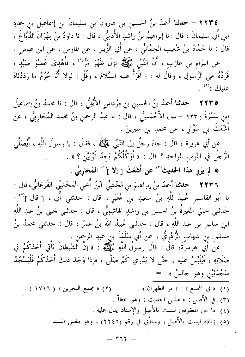 2235 - حَدَّثَنَا أَحْمَدُ بْنُ الْحُسَيْنِ بْنِ مِرْدَاسٍ الْأَيْلِيُّ قَالَ: نا مُحَمَّدُ بْنُ إِسْمَاعِيلَ بْنِ سَمُرَةَ الْأَحْمَسِيُّ قَالَ: نا عَبْدُ الرَّحْمَنِ بْنُ مُحَمَّدٍ الْمُحَارِبِيُّ، عَنْ أَشْعَثَ بْنِ سَوَّارٍ، عَنْ مُحَمَّدِ بْنِ سِيرِينَ، عَنْ أَبِي هُرَيْرَةَ قَالَ: جَاءَ رَجُلٌ إِلَى النَّبِيِّ صَلَّى اللهُ عَلَيْهِ وَسَلَّمَ فَقَالَ: يَا رَسُولَ اللَّهِ، §أَيُصَلِّي الرَّجُلُ فِي الثَّوْبِ الْوَاحِدِ؟ قَالَ: «أَوَكُلُّكُمْ يَجِدُ ثَوْبَيْنِ؟»