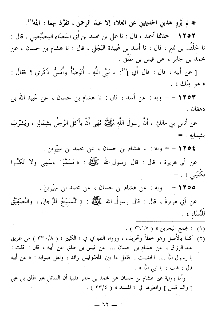 1255 - وَبِهِ: عَنْ هِشَامِ بْنِ حَسَّانَ، عَنْ مُحَمَّدِ بْنِ سِيرِينَ، عَنْ أَبِي هُرَيْرَةَ قَالَ: قَالَ رَسُولُ اللَّهِ صَلَّى اللهُ عَلَيْهِ وَسَلَّمَ: «§التَّسْبِيحُ لِلرِّجَالِ، وَالتَّصْفِيقُ لِلنِّسَاءِ»