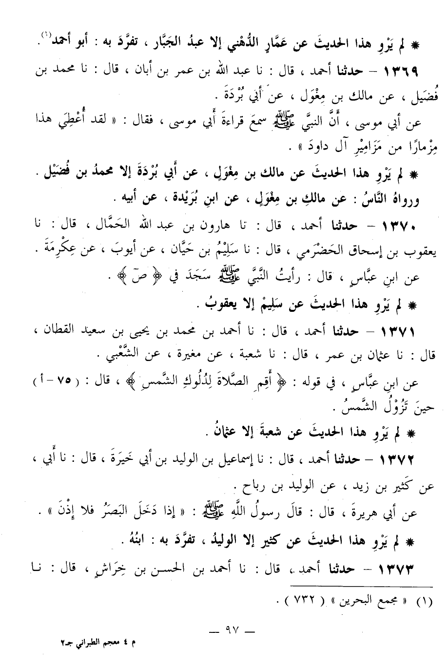1370 - حَدَّثَنَا أَحْمَدُ قَالَ: نا هَارُونُ بْنُ عَبْدِ اللَّهِ الْحَمَّالُ قَالَ: نا يَعْقُوبُ بْنُ إِسْحَاقَ الْحَضْرَمِيُّ قَالَ: نا سُلَيْمُ بْنُ حَيَّانَ، عَنْ أَيُّوبَ، عَنْ عِكْرِمَةَ، عَنِ ابْنِ عَبَّاسٍ قَالَ: «رَأَيْتُ النَّبِيَّ صَلَّى اللهُ عَلَيْهِ وَسَلَّمَ §سَجَدَ فِي ص»