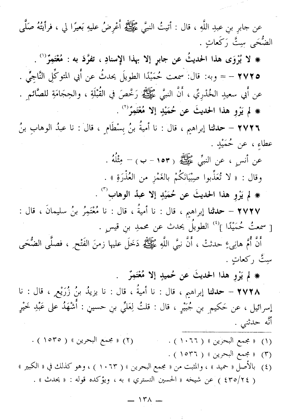 لَمْ يَرْوِ هَذَا الْحَدِيثَ عَنْ حُمَيْدٍ إِلَّا مُعْتَمِرٌ