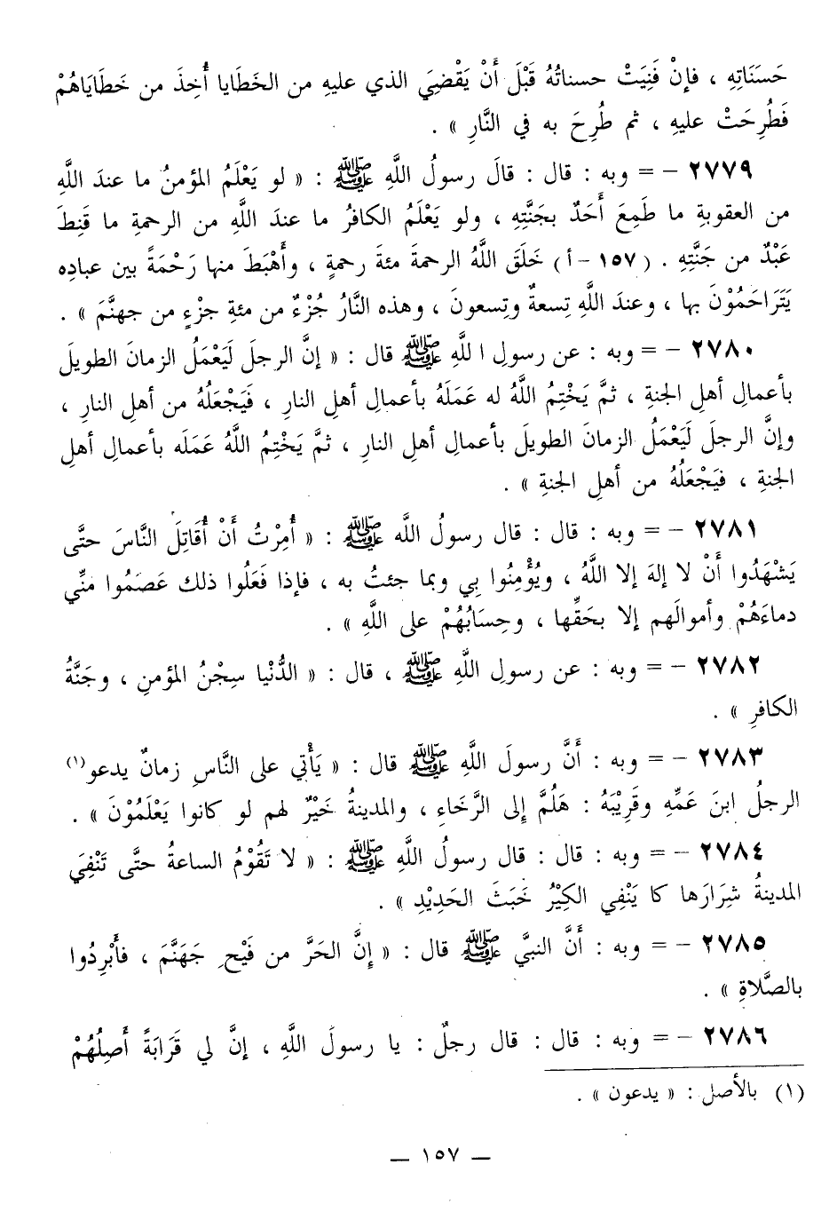 2786 - وَبِهِ قَالَ: قَالَ رَجُلٌ: يَا رَسُولَ اللَّهِ، إِنَّ لِي قَرَابَةً أَصِلُهُمْ -[158]- وَيَقْطَعُونِي، وأَحْلُمُ عَنْهُمْ وَيَجْهَلُونَ عَلَيَّ، وأُحْسِنُ إِلَيْهِمْ، ويُسِيئُونَ إِلَيَّ، فَقَالَ: «إِنْ كَانَ كَمَا تَقُولُ، §فَكَأَنَّمَا تُسِفُّهُمُ الْمَلَّ، وَلَا يَزَالُ مَعَكَ مِنَ اللَّهِ ظَهِيرٌ عَلَيْهِمْ مَا دُمْتَ عَلَى ذَلِكَ»
