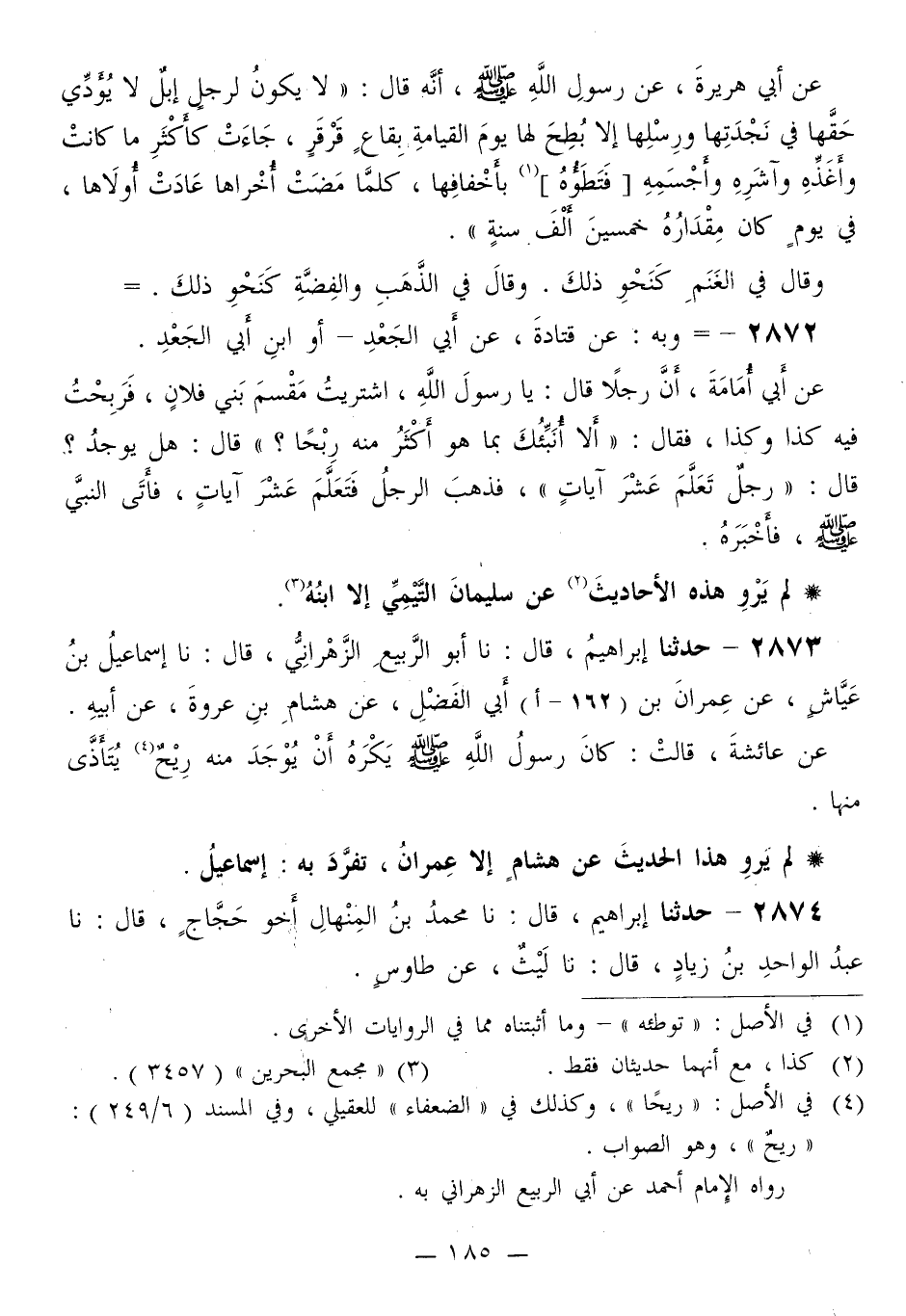 2872 - وَبِهِ عَنْ قَتَادَةَ، عَنْ أَبِي الْجَعْدِ، أَوِ ابْنِ أَبِي الْجَعْدِ، عَنْ أَبِي أُمَامَةَ، أَنَّ رَجُلًا قَالَ: يَا رَسُولَ اللَّهِ، اشْتَرَيْتُ مِقْسَمَ بَنِي فُلَانٍ، فَرَبِحْتُ فِيهِ كَذَا وَكَذَا، فَقَالَ: «§أَلَا أُنَبِّئُكَ بِمَا هُوَ أَكْثَرُ مِنْهُ رِبْحًا؟» قَالَ: هَلْ يُوجَدُ؟ قَالَ: «رَجُلٌ تَعَلَّمَ عَشْرَ آيَاتٍ» ، فَذَهَبَ الرَّجُلُ فَتَعَلَّمَ عَشْرَ آيَاتٍ، فَأَتَى النَّبِيَّ صَلَّى اللهُ عَلَيْهِ وَسَلَّمَ فَأَخْبَرَهُ لَمْ يَرْوِ هَذِهِ الْأَحَادِيثَ عَنْ سُلَيْمَانَ التَّيْمِيِّ إِلَّا ابْنُهُ