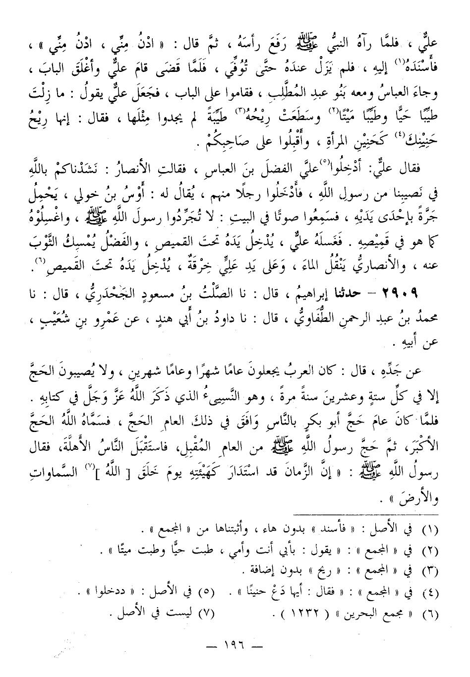 2909 - حَدَّثَنَا إِبْرَاهِيمُ قَالَ: نا الصَّلْتُ بْنُ مَسْعُودٍ الْجَحْدَرِيُّ قَالَ: نا مُحَمَّدُ بْنُ عَبْدِ الرَّحْمَنِ الطُّفَاوِيُّ قَالَ: نا دَاوُدُ بْنُ أَبِي هِنْدَ، عَنْ عَمْرِو بْنِ شُعَيْبٍ، عَنْ أَبِيهِ، عَنْ جَدِّهِ قَالَ: كَانَ الْعَرَبُ يَجْعَلُونَ عَامًا شَهْرًا وعَامًا شَهْرَيْنِ، وَلَا يُصِيبُونَ الْحِجَّ إِلَّا فِي كُلِّ سِتَّةٍ وَعِشْرِينَ سَنَةً مَرَّةً، وَهُوَ النَّسِيءُ الَّذِي ذَكَرَ اللَّهُ عَزَّ وَجَلَّ فِي كِتَابِهِ، فَلَمَّا كَانَ عَامٌ حَجَّ أَبُو بَكْرٍ بِالنَّاسِ وَافَقَ فِي ذَلِكَ الْعَامِ الْحَجَّ، فَسَمَّاهُ اللَّهُ الْحَجَّ الْأَكْبَرَ، ثُمَّ حَجَّ رَسُولُ اللَّهِ صَلَّى اللهُ عَلَيْهِ وَسَلَّمَ مِنَ الْعَامِ الْمُقْبِلِ، فَاسْتَقْبَلَ النَّاسُ الْأَهِلَّةَ، فَقَالَ رَسُولُ اللَّهِ صَلَّى اللهُ عَلَيْهِ وَسَلَّمَ: «إِنَّ §الزَّمَانَ قَدِ اسْتَدَارَ كَهَيْئَتِهِ يَوْمَ خَلَقَ اللَّهُ السَّمَاوَاتِ -[197]- وَالْأَرْضَ»