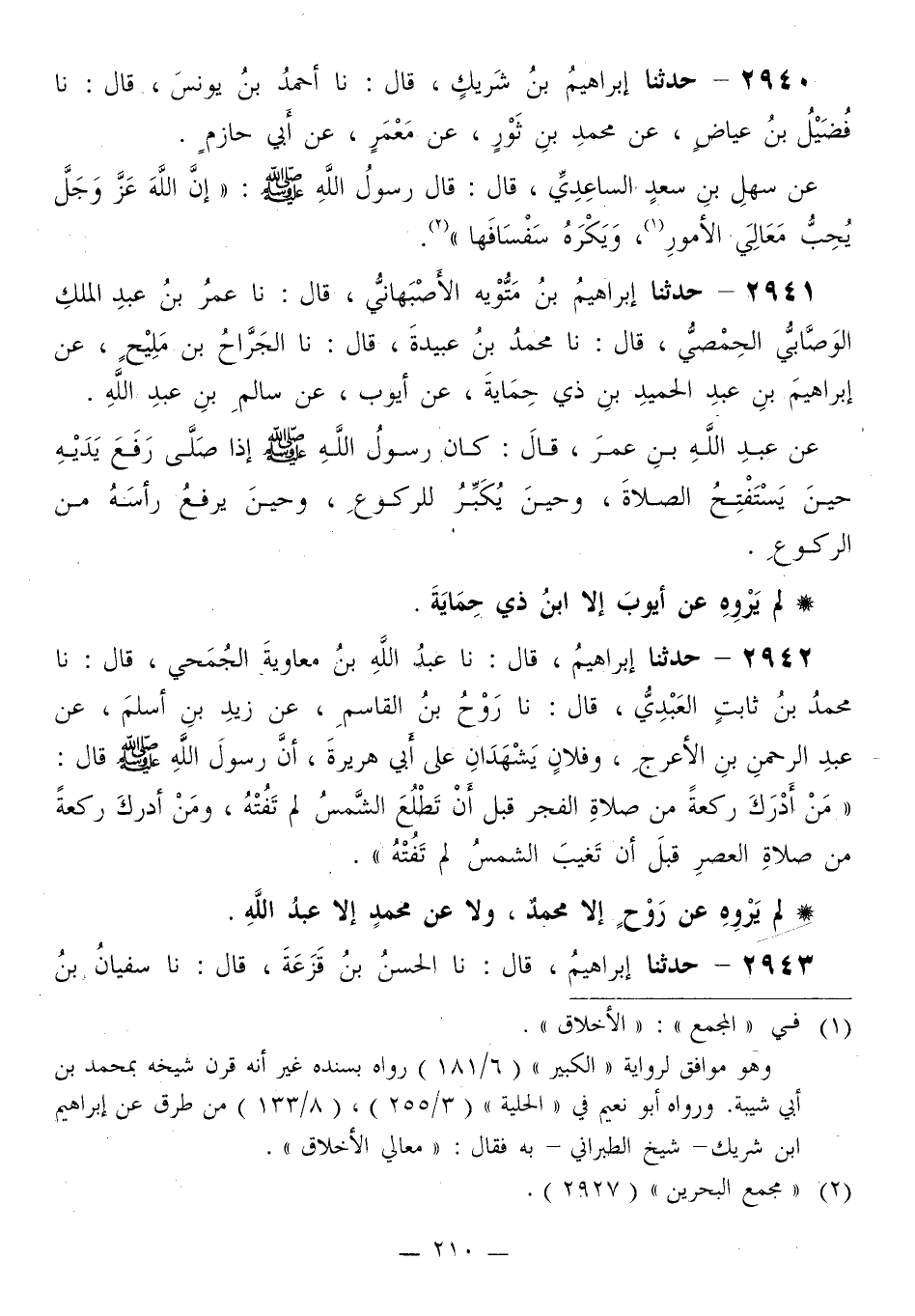 2940 - حَدَّثَنَا إِبْرَاهِيمُ بْنُ شَرِيكٍ قَالَ: نا أَحْمَدُ بْنُ يُونُسَ قَالَ: نا فُضَيْلُ بْنُ عِيَاضٍ، عَنْ مُحَمَّدِ بْنِ ثَوْرٍ، عَنْ مَعْمَرٍ، عَنْ أَبِي حَازِمٍ، عَنْ سَهْلِ بْنِ سَعْدٍ السَّاعِدِيِّ قَالَ: قَالَ رَسُولُ اللَّهِ صَلَّى اللهُ عَلَيْهِ وَسَلَّمَ: «إِنَّ §اللَّهَ عَزَّ وَجَلَّ يُحِبُّ مَعَالِيَ الْأُمُورِ، وَيَكْرَهُ سَفْسَافَهَا»
