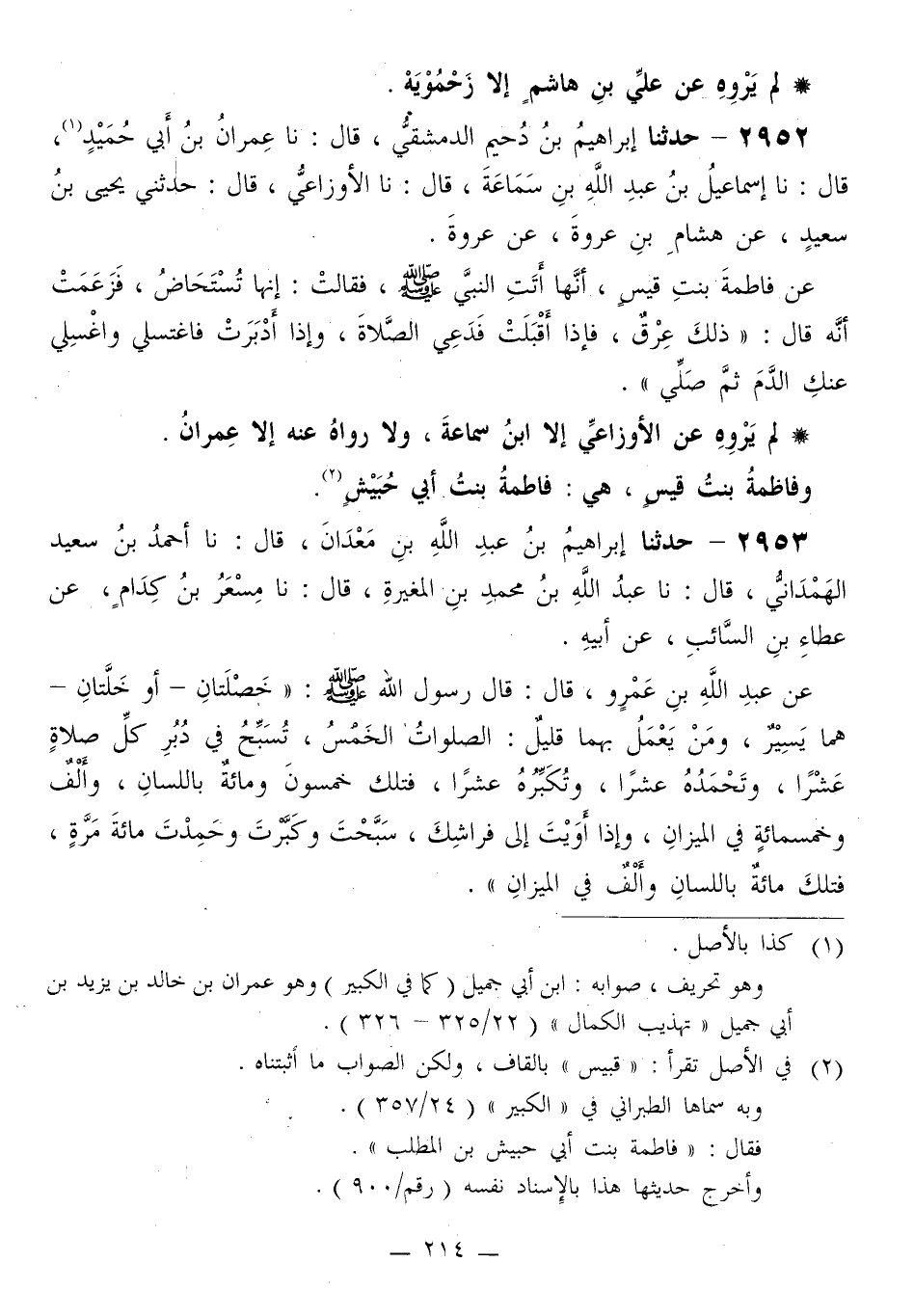 لَمْ يَرْوِهِ عَنِ الْأَوْزَاعِيِّ إِلَّا ابْنُ سَمَاعَةَ، وَلَا رَوَاهُ عَنْهُ إِلَّا عِمْرَانُ، وَفَاطِمَةُ بِنْتُ قَيْسٍ هِيَ فَاطِمَةُ بِنْتُ أَبِي حُبَيْشٍ