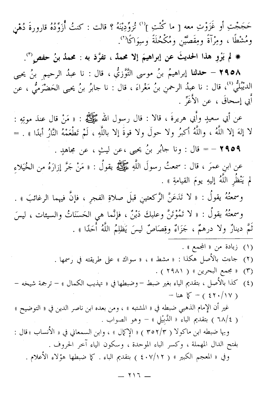 2958 - حَدَّثَنَا إِبْرَاهِيمُ بْنُ مُوسَى التَّوَّزِيُّ قَالَ: نا عَبْدُ الرَّحِيمِ بْنُ يَحْيَى الدَّيْبُلِيُّ قَالَ: نا عَبْدُ الرَّحْمَنِ بْنُ مَغْرَاءَ قَالَ: نا جَابِرُ بْنُ يَحْيَى الْحَضْرَمِيُّ، عَنْ أَبِي إِسْحَاقَ، عَنِ الْأَغَرِّ، عَنْ أَبِي سَعِيدٍ، وَأَبِي هُرَيْرَةَ قَالَا: قَالَ رَسُولُ اللَّهِ صَلَّى اللهُ عَلَيْهِ وَسَلَّمَ: «§مَنْ قَالَ عِنْدَ مَوْتِهِ: لَا إِلَهَ إِلَّا اللَّهُ، وَاللَّهُ أَكْبَرُ وَلَا حَوْلَ وَلَا قُوَّةَ إِلَّا بِاللَّهِ، لَمْ تَطْعَمْهُ النَّارُ أَبَدًا»