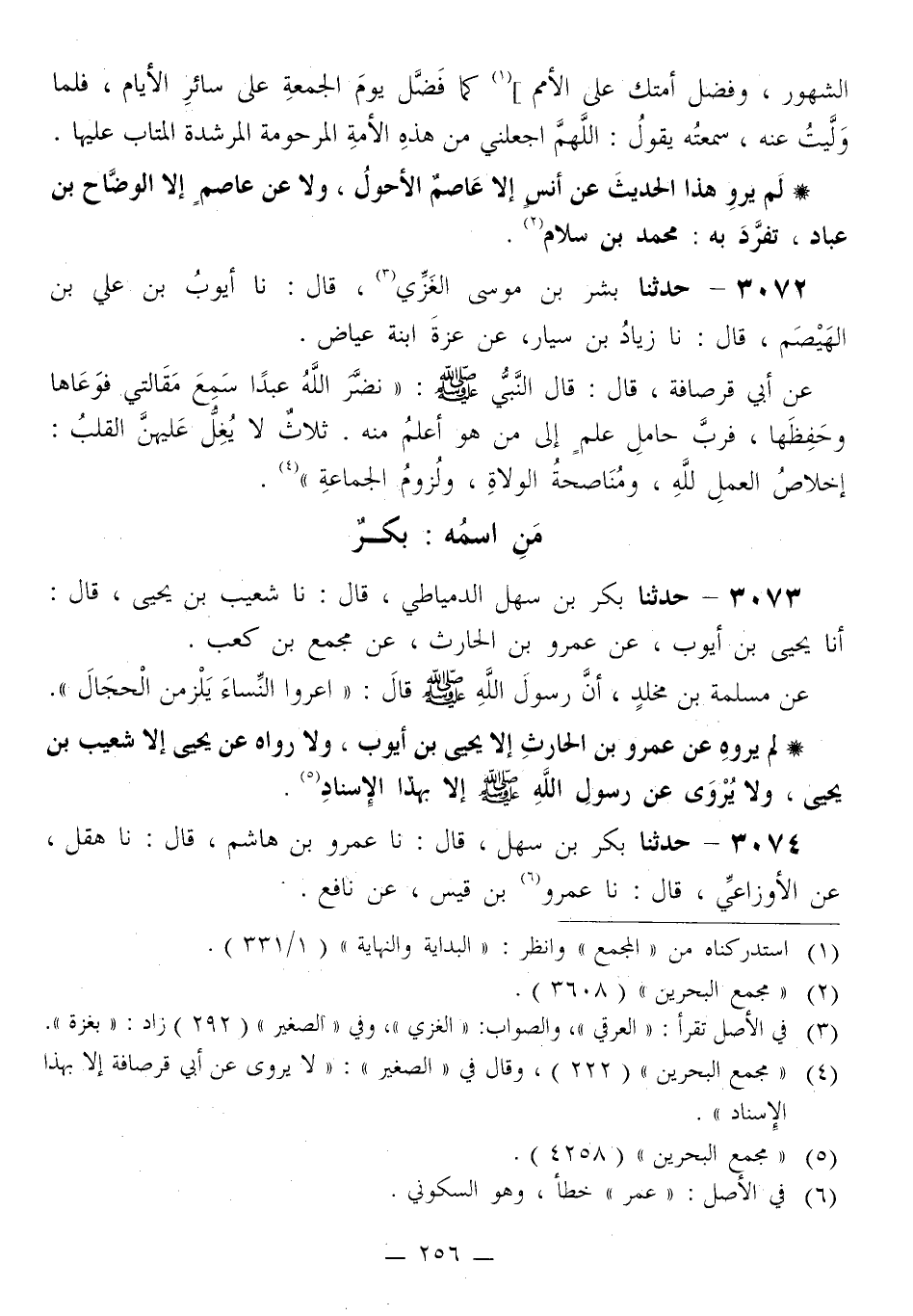 3072 - حَدَّثَنَا بِشْرُ بْنُ مُوسَى الْغَزِّيُّ قَالَ: نا أَيُّوبُ بْنُ عَلِيِّ بْنِ الْهَيْصَمِ قَالَ: نا زِيَادُ بْنُ سَيَّارٍ، عَنْ عَزَّةَ ابْنَةِ عِيَاضٍ، عَنْ أَبِي قِرْصَافَةَ قَالَ: قَالَ النَّبِيُّ صَلَّى اللهُ عَلَيْهِ وَسَلَّمَ: «§نَضَّرَ اللَّهُ عَبْدًا سَمِعَ مَقَالَتِي فَوَعَاهَا وَحَفِظَهَا، فَرُبَّ حَامِلِ عِلْمٍ إِلَى مَنْ هُوَ أَعْلَمُ مِنْهُ، ثَلَاثٌ لَا يُغِلُّ عَلَيْهِنَّ الْقَلْبُ: إِخْلَاصُ الْعَمَلِ لِلَّهِ، وَمُنَاصَحَةُ الْوُلَاةِ، وَلُزُومُ الْجَمَاعَةِ»