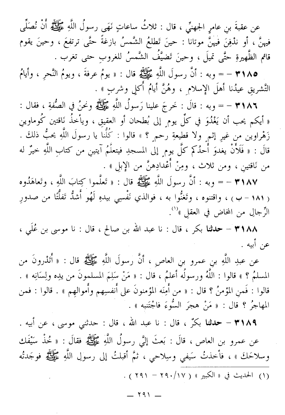 3185 - وَبِهِ أَنَّ رَسُولَ اللَّهِ صَلَّى اللهُ عَلَيْهِ وَسَلَّمَ قَالَ: «§يَوْمُ عَرَفَةَ، وَيَوْمُ النَّحْرِ، وَأَيَّامُ التَّشْرِيقِ عِيدُنَا أَهْلَ الْإِسْلَامِ، وَهُنَّ أَيَّامُ أَكْلٍ وَشُرْبٍ»