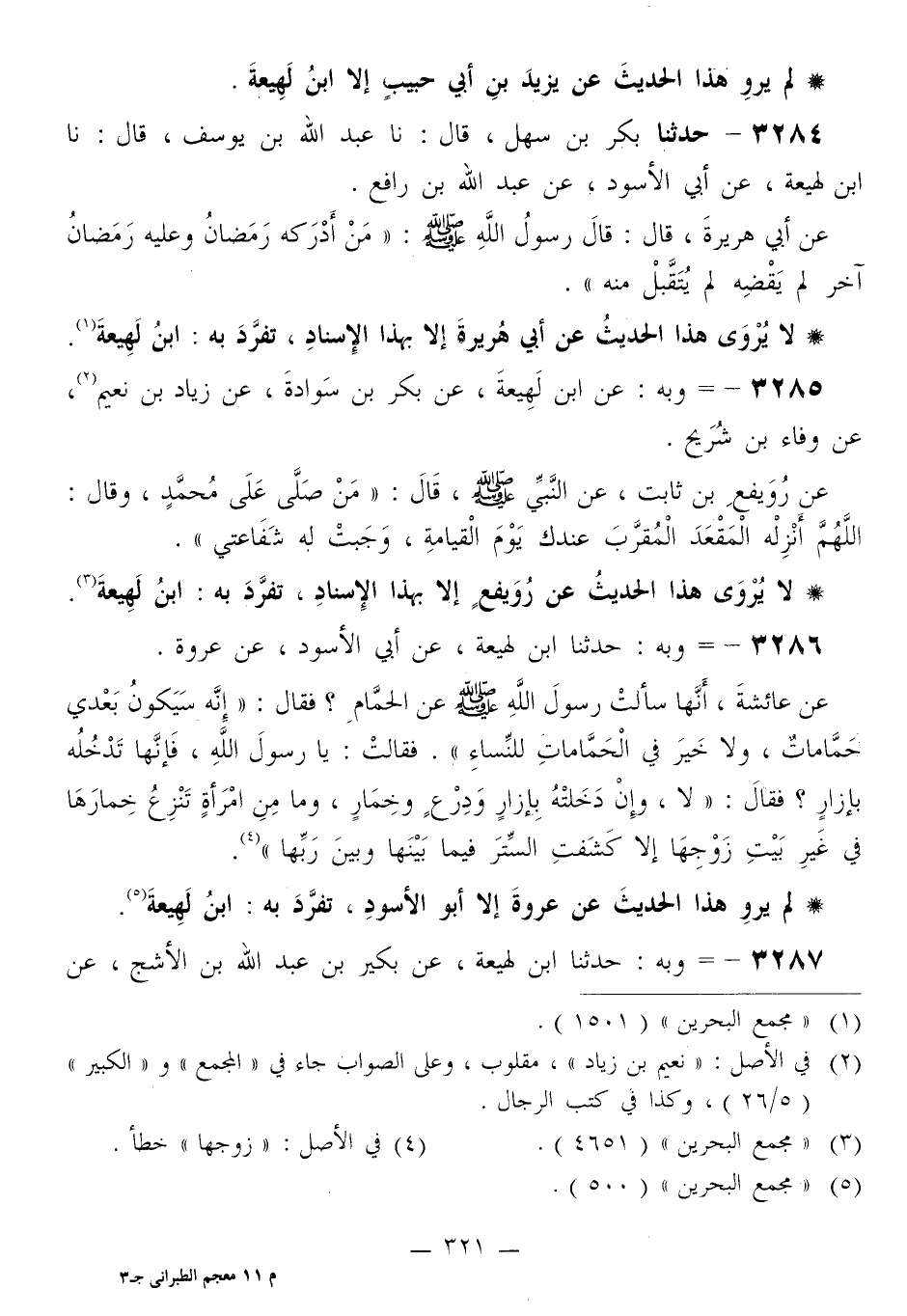 3285 - وَبِهِ عَنِ ابْنِ لَهِيعَةَ، عَنْ بَكْرِ بْنِ سَوَادَةَ، عَنْ زِيَادِ بْنِ نُعَيْمٍ، عَنْ وَفَاءِ بْنِ شُرَيْحٍ، عَنْ رُوَيْفِعِ بْنِ ثَابِتٍ، عَنِ النَّبِيِّ صَلَّى اللهُ عَلَيْهِ وَسَلَّمَ قَالَ: «§مَنْ صَلَّى عَلَى مُحَمَّدٍ، وَقَالَ: اللَّهُمَّ أَنْزِلْهُ الْمَقْعَدَ الْمُقَرَّبَ عِنْدِكَ يَوْمَ الْقِيَامَةِ، وَجَبَتْ لَهُ شَفَاعَتِي»