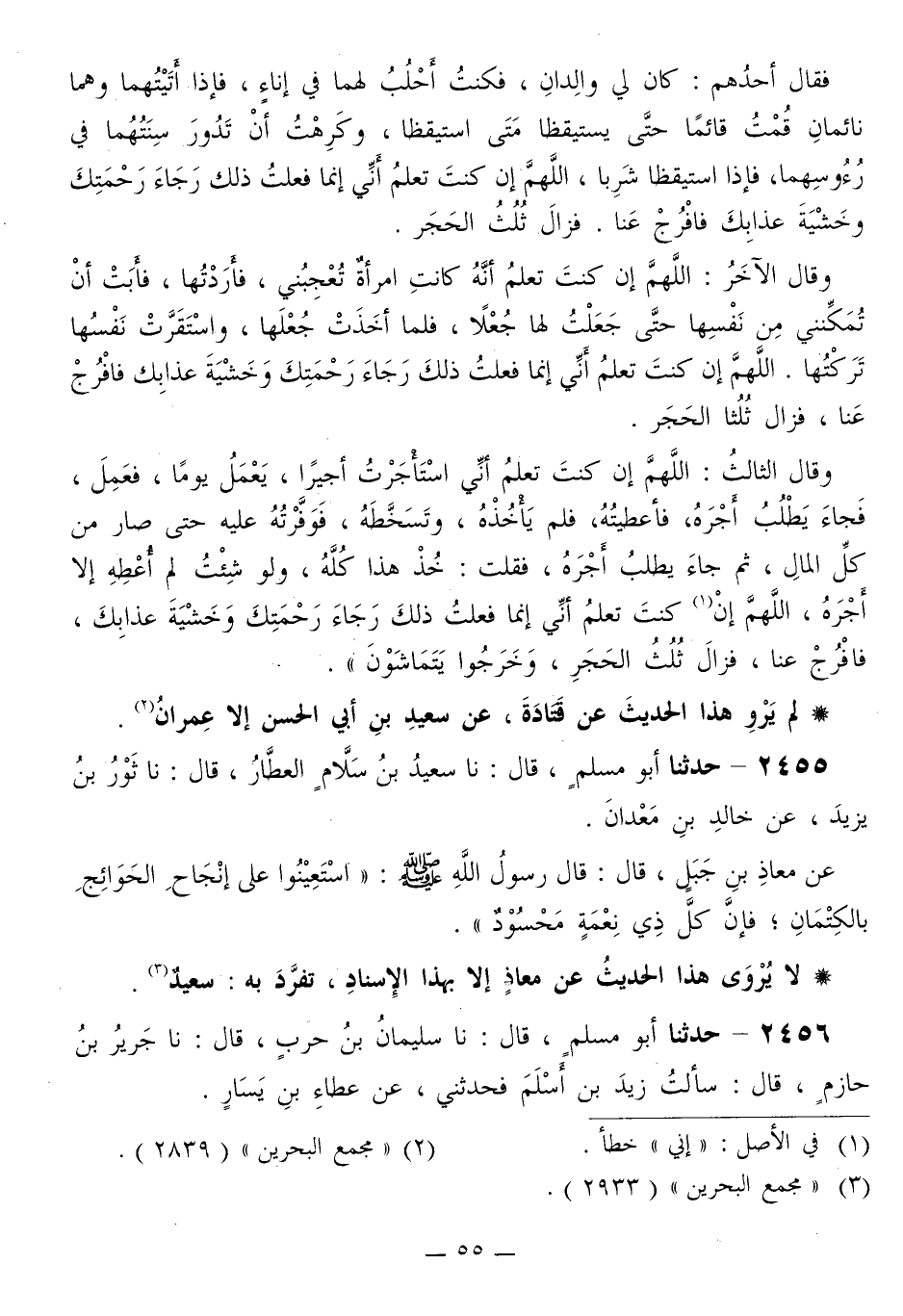 2455 - حَدَّثَنَا أَبُو مُسْلِمٍ قَالَ: نا سَعِيدُ بْنُ سَلَّامٍ الْعَطَّارُ قَالَ: نا ثَوْرُ بْنُ يَزِيدَ، عَنْ خَالِدِ بْنِ مَعْدَانَ، عَنْ مُعَاذِ بْنِ جَبَلٍ قَالَ: قَالَ رَسُولُ اللَّهِ صَلَّى اللهُ عَلَيْهِ وَسَلَّمَ: «§اسْتَعِينُوا عَلَى إنْجَاحِ الْحَوَائِجِ بِالْكِتْمَانِ، فَإِنَّ كُلَّ ذِي نِعْمَةٍ مَحْسُودٌ»