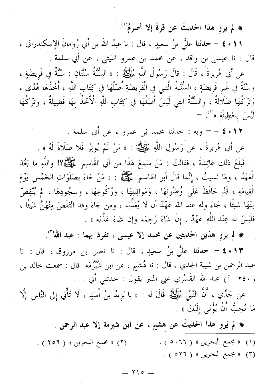 4012 - وَبِهِ: حَدَّثَنَا مُحَمَّدُ بْنُ عَمْرٍو، عَنْ أَبِي سَلَمَةَ، عَنْ أَبِي هُرَيْرَةَ، عَنْ رَسُولِ اللَّهِ صَلَّى اللهُ عَلَيْهِ وَسَلَّمَ «§مَنْ لَمْ يُوتِرْ فَلَا صَلَاةَ لَهُ»