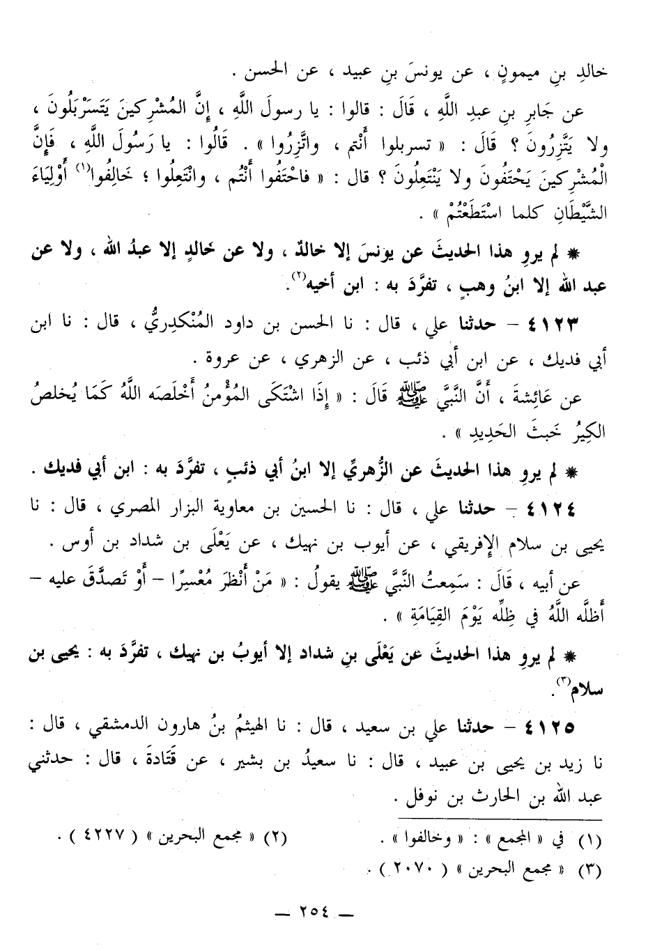 4125 - حَدَّثَنَا عَلِيُّ بْنُ سَعِيدٍ قَالَ: نا الْهَيْثَمُ بْنُ هَارُونَ الدِّمَشْقِيُّ قَالَ: نا زَيْدُ بْنُ يَحْيَى بْنِ عُبَيْدٍ قَالَ: نا سَعِيدُ بْنُ بَشِيرٍ، عَنْ قَتَادَةَ قَالَ: حَدَّثَنِي عَبْدُ اللَّهِ بْنُ الْحَارِثِ بْنِ نَوْفَلٍ،