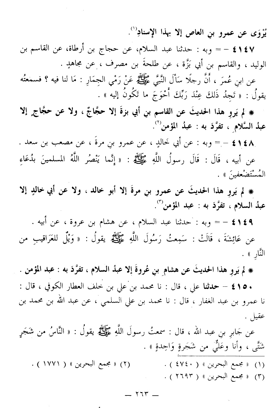 لَمْ يَرْوِ هَذَا الْحَدِيثَ عَنْ عَمْرِو بْنِ مُرَّةَ إِلَّا أَبُو خَالِدٍ، وَلَا عَنْ أَبِي خَالِدٍ إِلَّا عَبْدُ السَّلَامِ، تَفَرَّدَ بِهِ: عَبْدُ الْمُؤْمِنِ "
