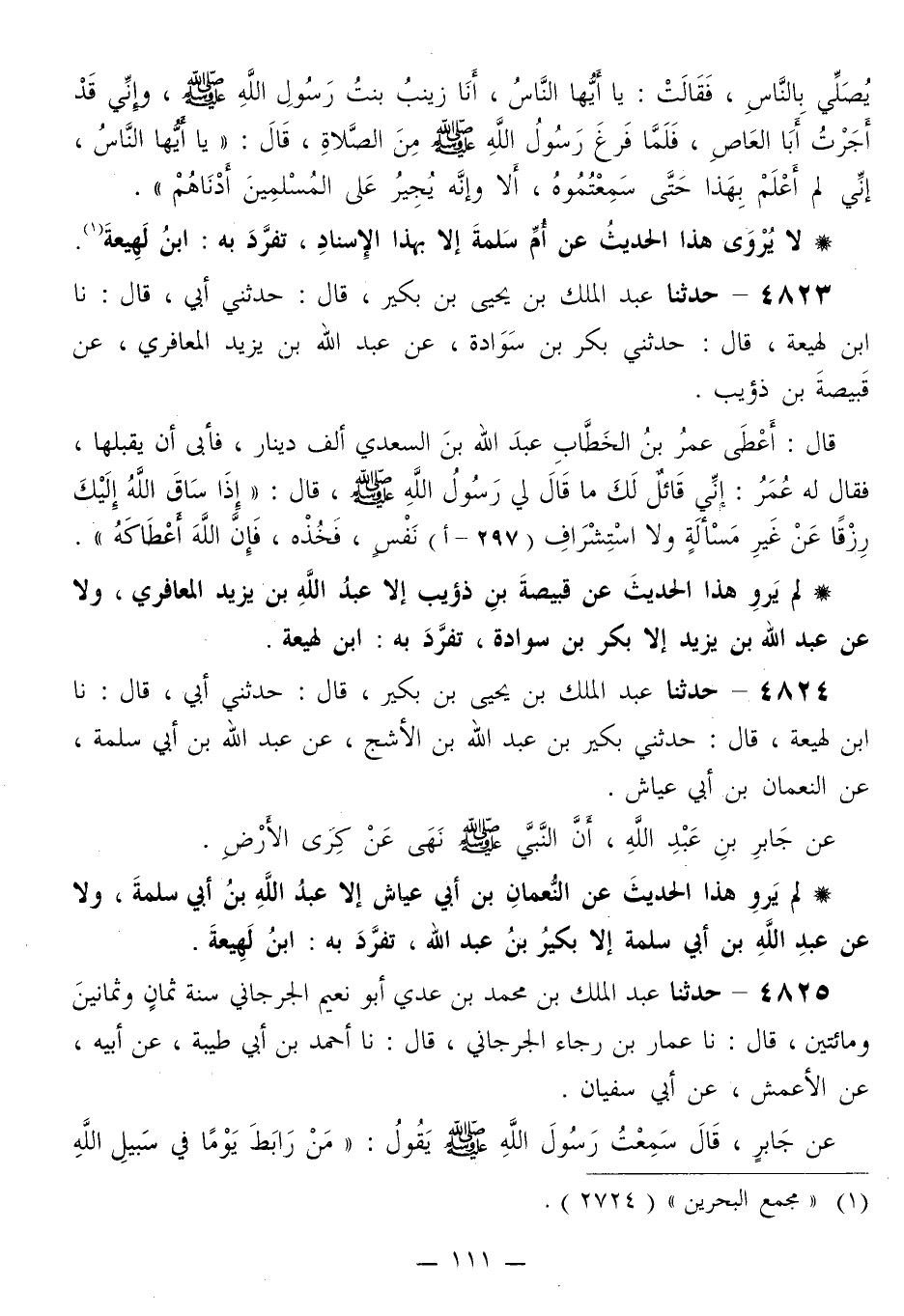 لَمْ يَرْوِ هَذَا الْحَدِيثَ عَنْ قَبِيصَةَ بْنِ ذُؤَيْبٍ إِلَّا عَبْدُ اللَّهِ بْنُ يَزِيدَ الْمَعَافِرِيُّ، وَلَا عَنْ عَبْدِ اللَّهِ بْنِ يَزِيدَ إِلَّا بَكْرُ بْنُ سَوَادَةَ، تَفَرَّدَ بِهِ: ابْنُ لَهِيعَةَ "