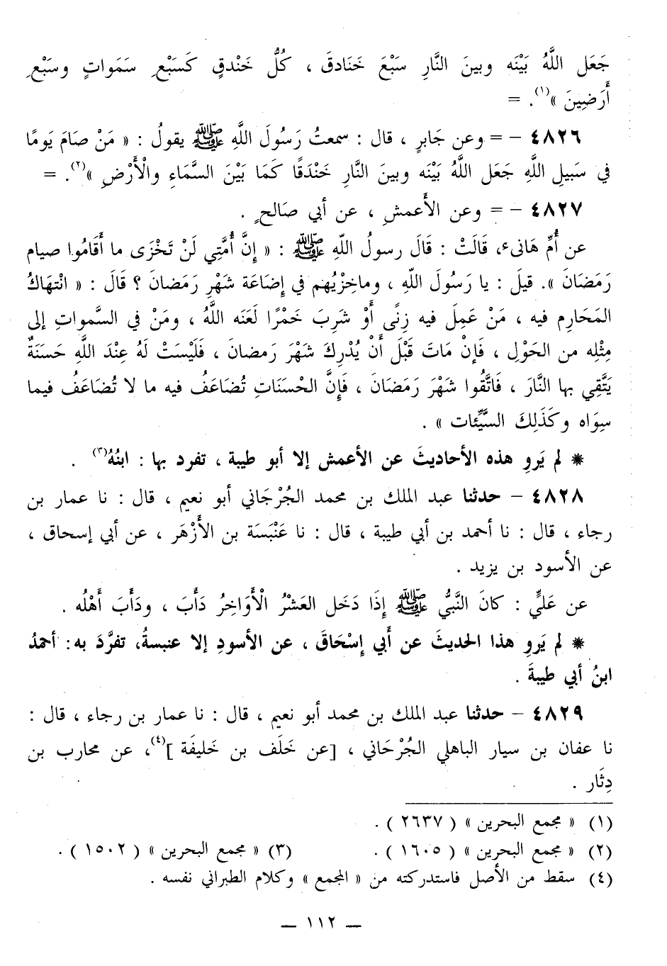 4826 - وَعَنْ جَابِرٍ قَالَ: سَمِعْتُ رَسُولَ اللَّهِ صَلَّى اللهُ عَلَيْهِ وَسَلَّمَ يَقُولُ: «§مَنْ صَامَ يَوْمًا فِي سَبِيلِ اللَّهِ جَعَلَ اللَّهُ بَيْنَهُ وَبَيْنَ النَّارِ خَنْدَقًا كَمَا بَيْنَ السَّمَاءِ وَالْأَرْضِ»