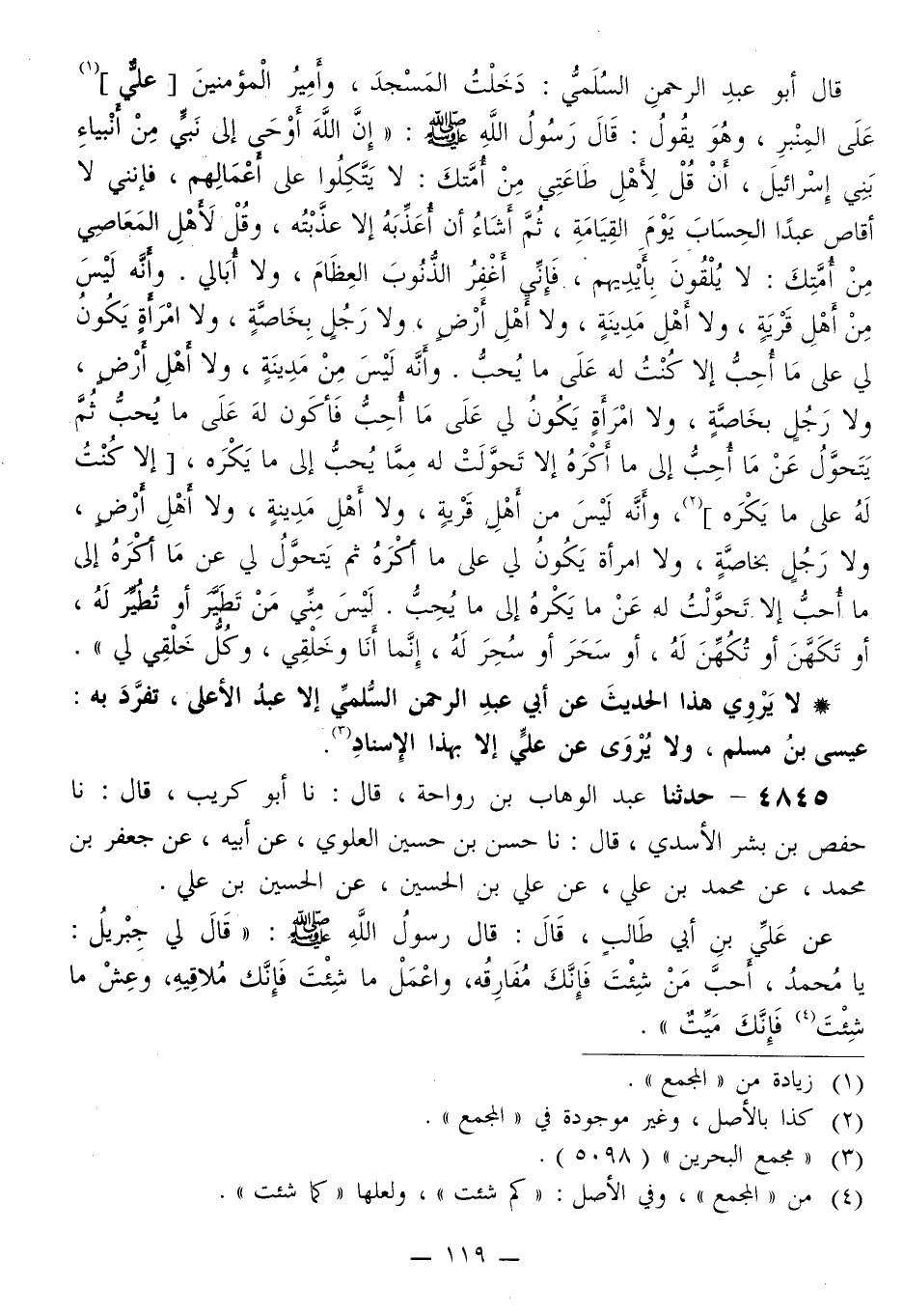 4845 - حَدَّثَنَا عَبْدُ الْوَهَّابِ بْنُ رَوَاحَةَ قَالَ: نَا أَبُو كُرَيْبٍ قَالَ: نَا حَفْصُ بْنُ بِشْرٍ الْأَسَدِيُّ قَالَ: نَا حُسْنُ بْنُ حُسَيْنٍ الْعَلَوِيُّ، عَنْ أَبِيهِ، عَنْ جَعْفَرِ بْنِ مُحَمَّدٍ، عَنْ مُحَمَّدِ بْنِ عَلِيٍّ، عَنْ عَلِيِّ بْنِ الْحُسَيْنِ، عَنِ الْحُسَيْنِ بْنِ عَلِيٍّ، عَنْ عَلِيِّ بْنِ أَبِي طَالِبٍ قَالَ: قَالَ رَسُولُ اللَّهِ صَلَّى اللهُ عَلَيْهِ وَسَلَّمَ: قَالَ لِي جِبْرِيلُ: يَا مُحَمَّدُ، أَحِبَّ مَنْ شِئْتَ فَإِنَّكَ مَفَارِقُهُ، وَاعْمَلْ مَا شِئْتَ فَإِنَّكَ مُلَاقِيهِ، وَعِشْ مَا شِئْتَ فَإِنَّكَ مَيِّتٌ «. -[120]- وَقَالَ رَسُولُ اللَّهِ صَلَّى اللهُ عَلَيْهِ وَسَلَّمَ:» §أَوْجَزَ لِي جِبْرِيلُ عَلَيْهِ السَّلَامُ فِي الْخُطْبَةِ "