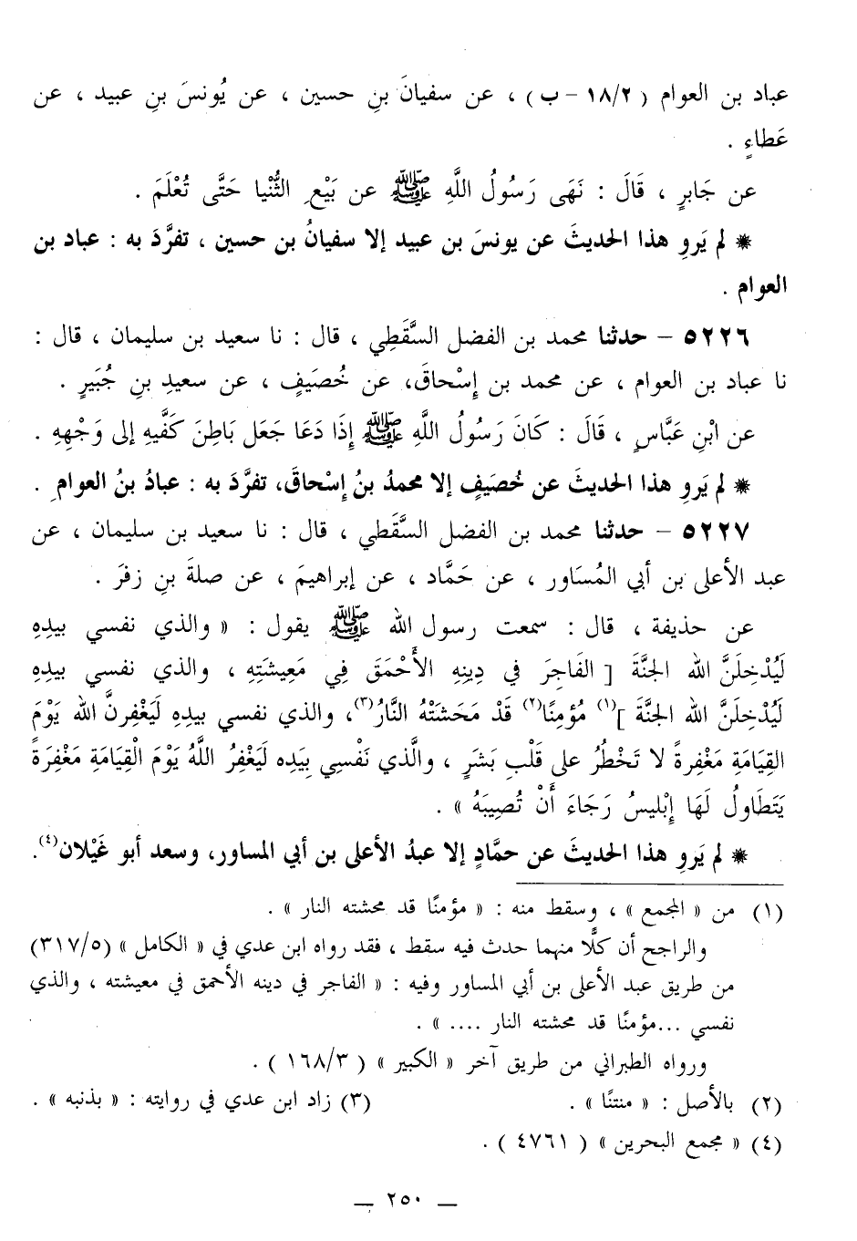5227 - حَدَّثَنَا مُحَمَّدُ بْنُ الْفَضْلِ السَّقَطِيُّ قَالَ: نَا سَعِيدُ بْنُ سُلَيْمَانَ، عَنْ عَبْدِ الْأَعْلَى بْنِ أَبِي الْمُسَاوِرِ، عَنْ حَمَّادٍ، عَنْ إِبْرَاهِيمَ، عَنْ صِلَةَ بْنِ زُفَرٍ، عَنْ حُذَيْفَةَ قَالَ: سَمِعْتُ رَسُولَ اللَّهِ صَلَّى اللهُ عَلَيْهِ وَسَلَّمَ يَقُولُ: «وَالَّذِي نَفْسِي بِيَدِهِ §لَيُدْخِلَنَّ اللَّهُ الْجَنَّةَ الْفَاجِرَ فِي دِينِهِ، الْأَحْمَقَ فِي مَعِيشَتِهِ، وَالَّذِي نَفْسِي بِيَدِهِ لَيُدْخِلَنَّ اللَّهُ الْجَنَّةَ مُؤْمِنًا قَدْ مَحَشَتْهُ النَّارُ، وَالَّذِي نَفْسِي بِيَدِهِ لَيَغْفِرَنَّ اللَّهُ يَوْمَ الْقِيَامَةِ مَغْفِرَةً لَا تَخْطُرُ عَلَى قَلْبِ بِشْرٍ، وَالَّذِي نَفْسِي بِيَدِهِ لَيَغْفِرُ اللَّهُ يَوْمَ الْقِيَامَةِ مَغْفِرَةً يَتَطَاوَلُ لَهَا إِبْلِيسُ رَجَاءَ أَنْ تُصِيبَهُ»