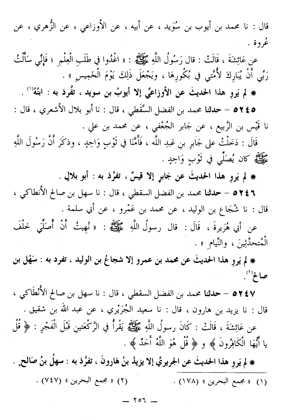 5246 - حَدَّثَنَا مُحَمَّدُ بْنُ الْفَضْلِ السَّقَطِيُّ قَالَ: نَا سَهْلُ بْنُ صَالِحٍ الْأَنْطَاكِيُّ قَالَ: نَا شُجَاعُ بْنُ الْوَلِيدِ، عَنْ مُحَمَّدِ بْنِ عَمْرٍو، عَنْ أَبِي سَلَمَةَ، عَنْ أَبِي هُرَيْرَةَ قَالَ: قَالَ رَسُولُ اللَّهِ صَلَّى اللهُ عَلَيْهِ وَسَلَّمَ: «§نُهِيتُ أَنْ أُصَلِّيَ خَلْفَ الْمُتَحَدِّثِينَ وَالنِّيَامِ»