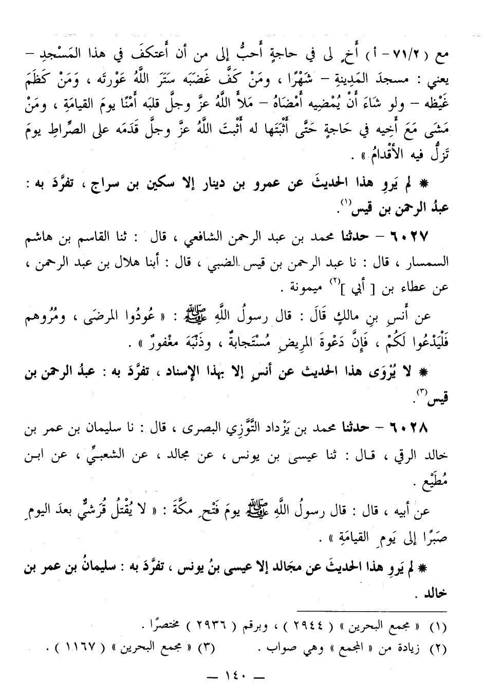 6027 - حَدَّثَنَا مُحَمَّدُ بْنُ عَبْدِ الرَّحْمَنِ الشَّافِعِيُّ قَالَ: ثَنَا الْقَاسِمُ بْنُ هَاشِمٍ السِّمْسَارُ قَالَ: نا عَبْدُ الرَّحْمَنِ بْنُ قَيْسٍ الضَّبِّيُّ قَالَ: أبنا هِلَالُ بْنُ عَبْدِ الرَّحْمَنِ، عَنْ عَطَاءِ بْنِ أَبِي مَيْمُونَةَ، عَنْ أَنَسِ بْنِ مَالِكٍ قَالَ: قَالَ رَسُولُ اللَّهِ صَلَّى اللهُ عَلَيْهِ وَسَلَّمَ: «§عُودُوا الْمَرْضَى، وَمُرُوهُمْ فَلْيَدْعُوا لَكُمْ، فَإِنَّ دَعْوَةَ الْمَرِيضِ مُسْتَجَابَةٌ، وَذَنْبُهُ مَغْفُورٌ»