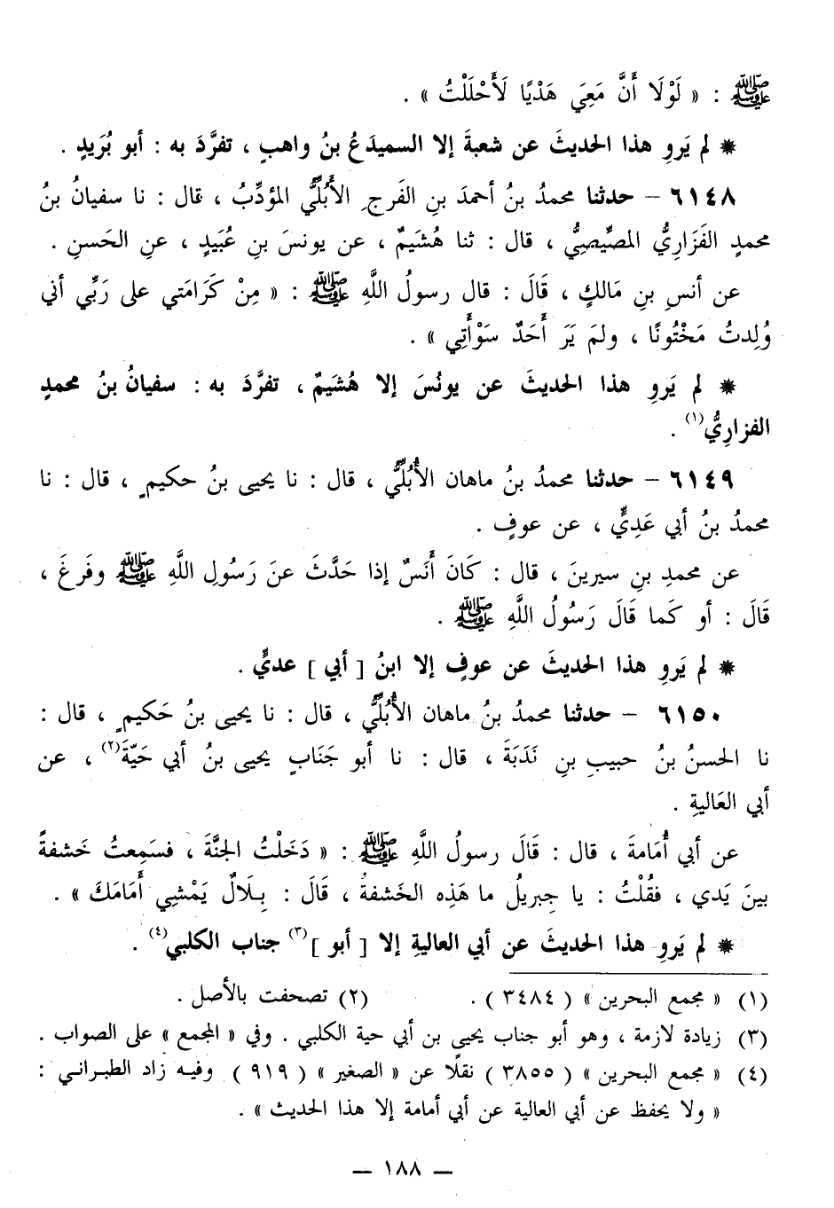6148 - حَدَّثَنَا مُحَمَّدُ بْنُ أَحْمَدَ بْنِ الْفَرَجِ الْأُبُلِّيُّ الْمُؤَدِّبُ، قَالَ نا سُفْيَانُ بْنُ مُحَمَّدٍ الْفَزَارِيُّ الْمِصِّيصِيُّ، قَالَ ثَنَا هُشَيْمٌ، عَنْ يُونُسَ بْنِ عُبَيْدٍ، عَنِ الْحَسَنِ، عَنْ أَنَسِ بْنِ مَالِكٍ قَالَ: قَالَ رَسُولُ اللَّهِ صَلَّى اللهُ عَلَيْهِ وَسَلَّمَ: «§مِنْ كَرَامَتِي عَلَى رَبِّي أَنِّي وُلِدْتُ مَخْتُونًا، وَلَمْ يَرَ أَحَدٌ سَوْأَتِي»