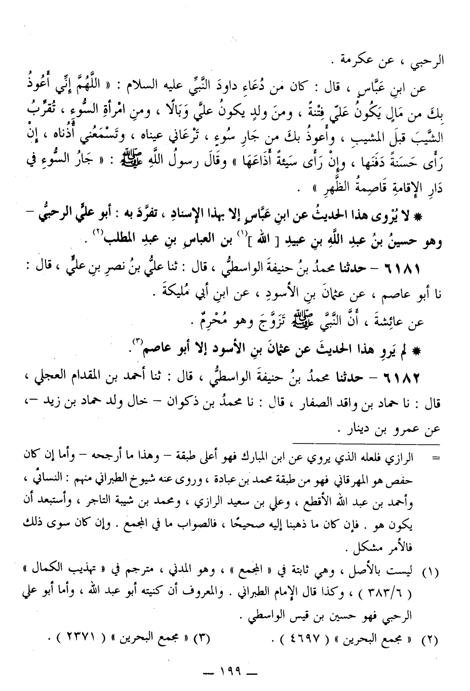 لَا يُرْوَى هَذَا الْحَدِيثُ عَنِ ابْنِ عَبَّاسٍ إِلَّا بِهَذَا الْإِسْنَادِ، تَفَرَّدَ بِهِ أَبُو عَلِيٍّ الرَّحَبِيُّ وَهُوَ حُسَيْنُ بْنُ عَبْدِ اللَّهِ بْنِ عُبَيْدِ اللَّهِ بْنِ الْعَبَّاسِ بْنِ عَبْدِ الْمُطَّلِبِ "