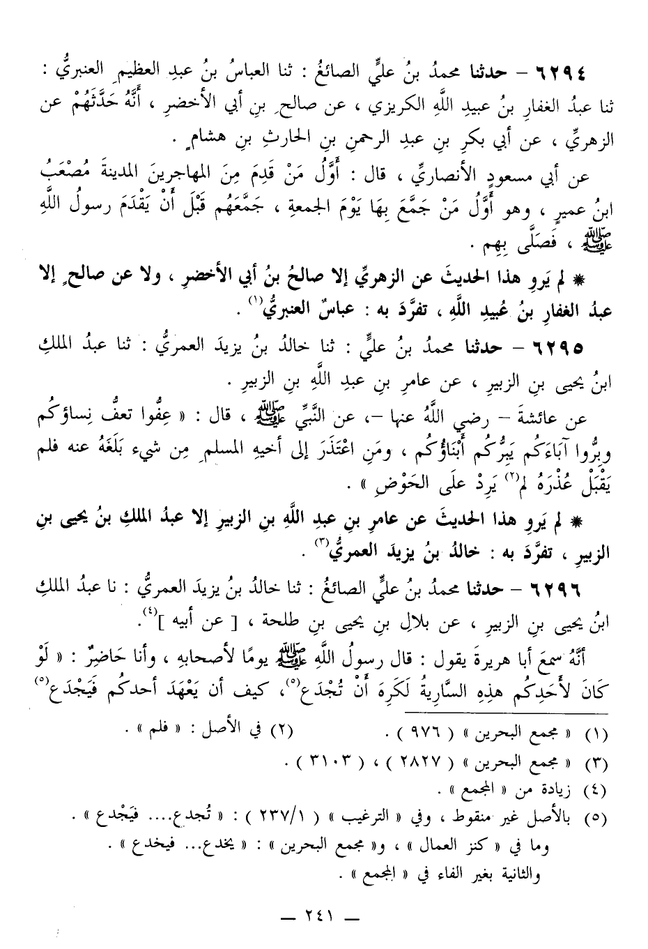 لَمْ يَرْوِ هَذَا الْحَدِيثَ عَنْ عَامِرِ بْنِ عَبْدِ اللَّهِ بْنِ الزُّبَيْرِ إِلَّا عَبْدُ الْمَلِكِ بْنُ يَحْيَى بْنِ الزُّبَيْرِ، تَفَرَّدَ بِهِ خَالِدُ بْنُ يَزِيدَ الْعُمَرِيُّ "