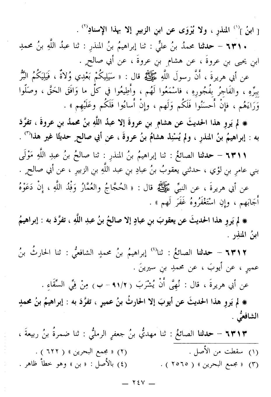 6311 - حَدَّثَنَا الصَّائِغُ، ثَنَا إِبْرَاهِيمُ بْنُ الْمُنْذِرِ، ثَنَا صَالِحُ بْنُ عَبْدِ اللَّهِ مَوْلَى بَنِي عَامِرِ بْنِ لُؤَيٍّ، حَدَّثَنِي يَعْقُوبُ بْنُ عَبَّادِ بْنِ عَبْدِ اللَّهِ بْنِ الزُّبَيْرِ، عَنْ أَبِي صَالِحٍ، عَنْ أَبِي هُرَيْرَةَ، عَنِ النَّبِيِّ صَلَّى اللهُ عَلَيْهِ وَسَلَّمَ قَالَ: «§الْحُجَّاجُ وَالْعُمَّارُ وَفْدُ اللَّهِ، إِنْ دَعُوهُ أَجَابَهُمْ، وَإِنِ اسْتَغْفَرُوهُ غَفَرَ لَهُمْ»