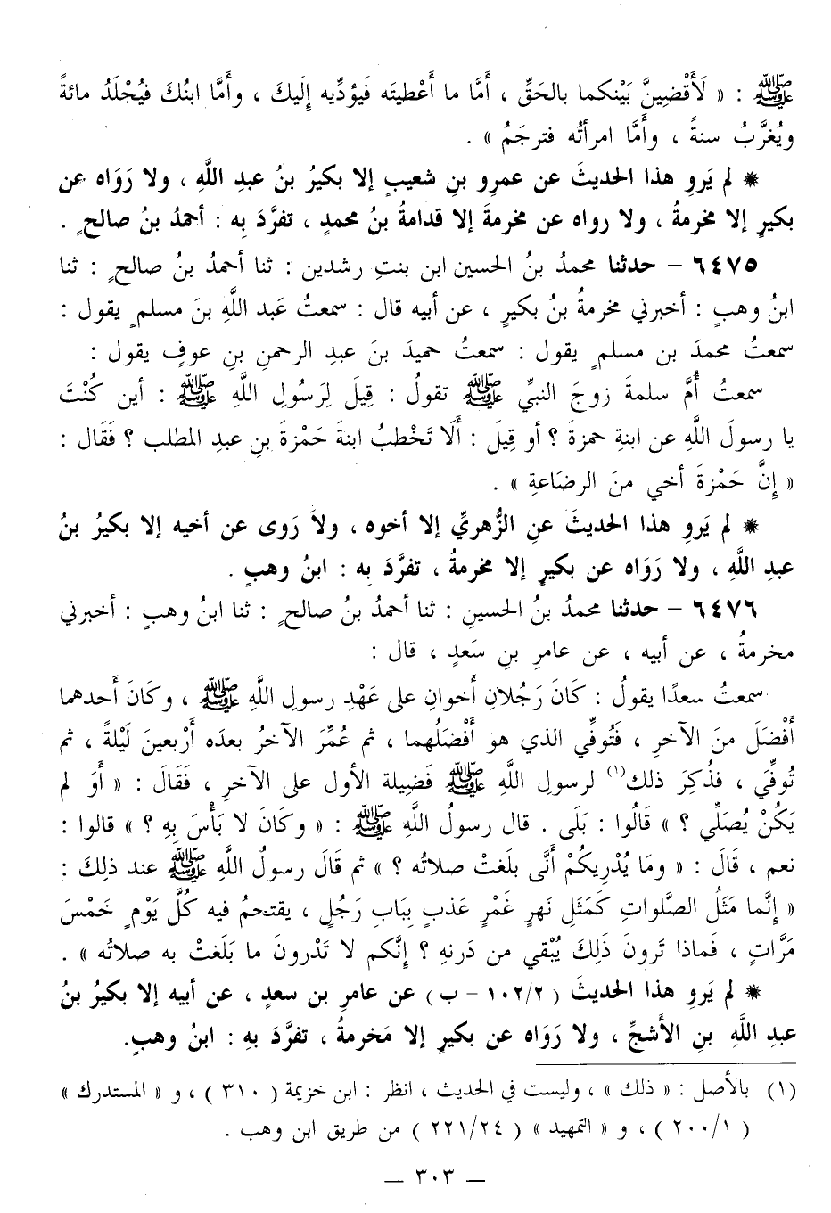 لَمْ يَرْوِ هَذَا الْحَدِيثَ عَنْ عَامِرِ بْنِ سَعْدٍ، عَنْ أَبِيهِ إِلَّا بُكَيْرُ بْنُ عَبْدِ اللَّهِ بْنِ الْأَشَجِّ، وَلَا رَوَاهُ عَنْ بُكَيْرٍ إِلَّا مَخْرَمَةُ، تَفَرَّدَ بِهِ ابْنُ وَهْبٍ. -[304]- وَرَوَاهُ ابْنُ أَخِي الزُّهْرِيِّ، عَنِ الزُّهْرِيِّ، عَنْ صَالِحِ بْنِ عَبْدِ اللَّهِ بْنِ أَبِي فَرْوَةَ، عَنْ عَامِرِ بْنِ سَعْدٍ، عَنْ أَبَانَ بْنِ عُثْمَانَ، عَنْ أَبِيهِ "