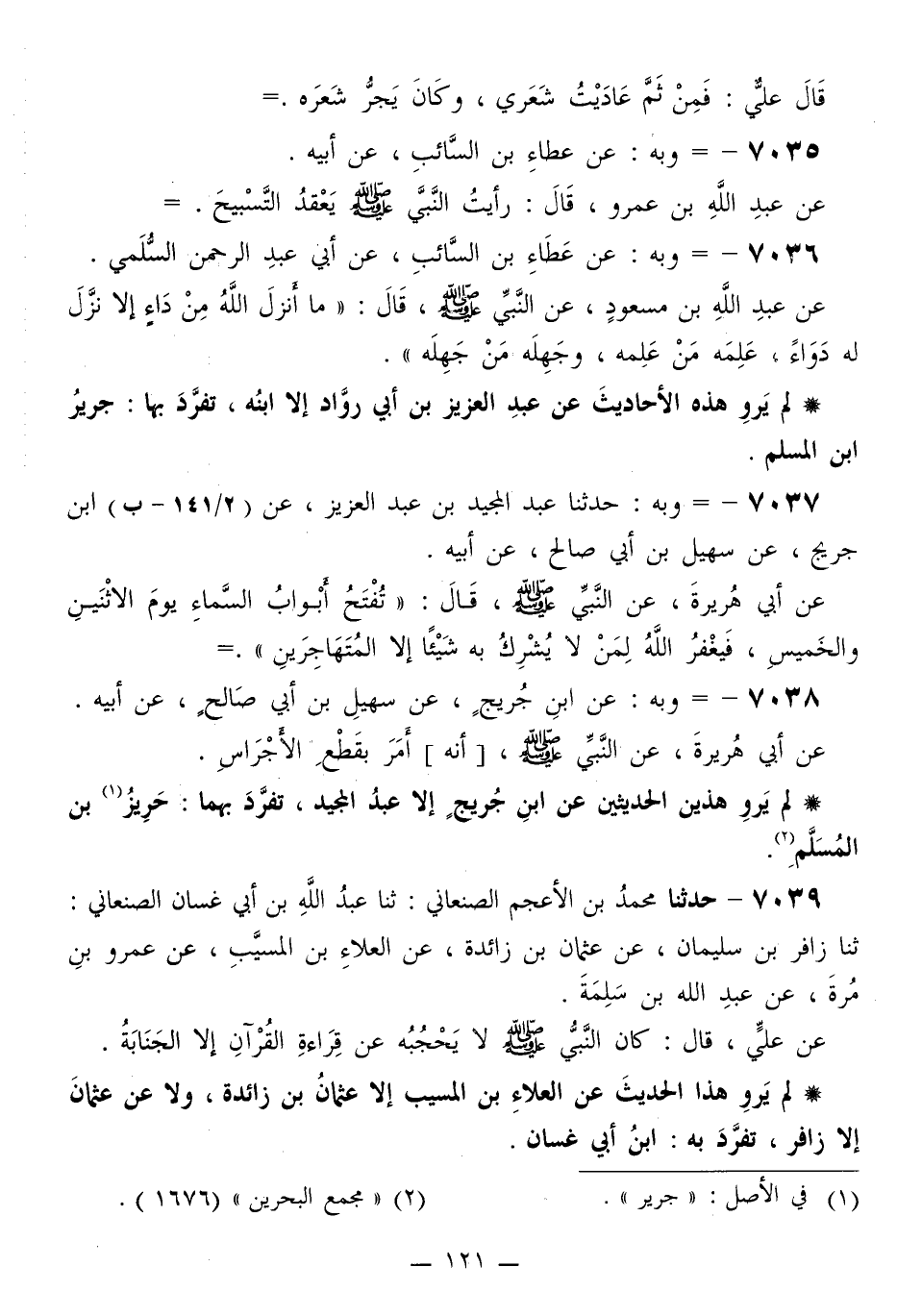 لَمْ يَرْوِ هَذَيْنِ الْحَدِيثَيْنِ عَنِ ابْنِ جُرَيْجٍ إِلَّا عَبْدُ الْمَجِيدِ، تَفَرَّدَ بِهِمَا: حَرِيزُ بْنُ الْمُسَلَّمِ "