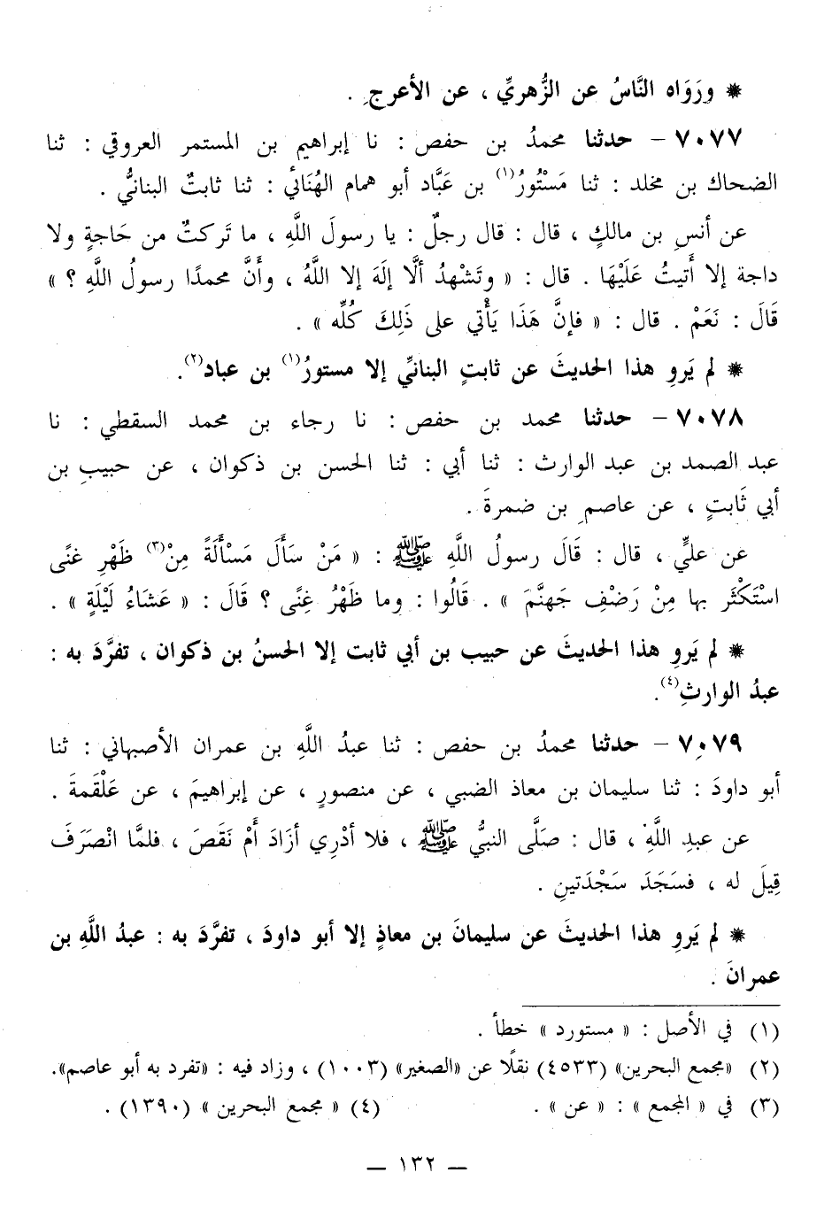 7077 - حَدَّثَنَا مُحَمَّدُ بْنُ حَفْصٍ، نَا إِبْرَاهِيمُ بْنُ الْمُسْتَمِرِّ الْعُرُوقِيُّ، ثَنَا الضَّحَّاكُ بْنُ مَخْلَدٍ، ثَنَا مَسْتُورُ بْنُ عَبَّادٍ أَبُو هَمَّامٍ الْهُنَائِيُّ، ثَنَا ثَابِتٌ الْبُنَانِيُّ، عَنْ أَنَسِ بْنِ مَالِكٍ قَالَ: قَالَ رَجُلٌ: يَا رَسُولَ اللَّهِ، §مَا تَرَكْتُ مِنْ حَاجَةٍ وَلَا داجَةٍ إِلَّا أَتَيْتُ عَلَيْهَا قَالَ: «وَتَشْهَدُ أَنْ لَا إِلَهَ إِلَّا اللَّهُ، وَأَنَّ مُحَمَّدًا رَسُولُ اللَّهِ؟» قَالَ: نَعَمْ قَالَ: «فَإِنَّ هَذَا يَأْتِي عَلَى ذَلِكَ كُلِّهِ»