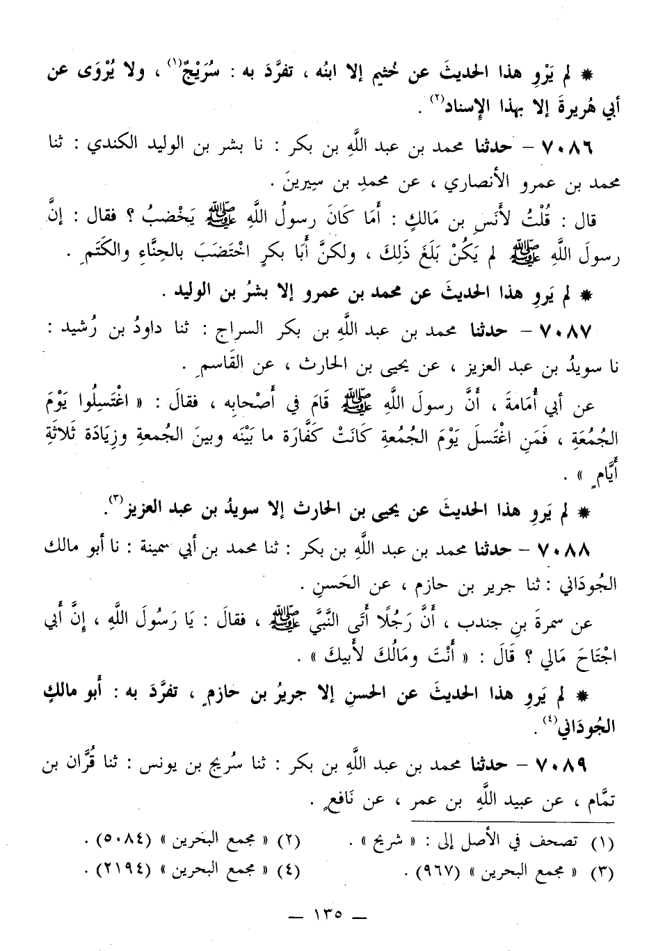 7087 - حَدَّثَنَا مُحَمَّدُ بْنُ عَبْدِ اللَّهِ بْنِ بَكْرٍ السَّرَّاجُ، ثَنَا دَاوُدُ بْنُ رُشَيْدٍ، نَا سُوَيْدُ بْنُ عَبْدِ الْعَزِيزِ، عَنْ يَحْيَى بْنِ الْحَارِثِ، عَنِ الْقَاسِمِ، عَنْ أَبِي أُمَامَةَ، أَنَّ رَسُولَ اللَّهِ صَلَّى اللهُ عَلَيْهِ وَسَلَّمَ قَامَ فِي أَصْحَابِهِ، فَقَالَ: «§اغْتَسِلُوا يَوْمَ الْجُمُعَةِ، فَمَنِ اغْتَسَلَ يَوْمَ الْجُمُعَةِ كَانَتْ كَفَّارَةَ مَا بَيْنَهُ وَبَيْنَ الْجُمُعَةِ وَزِيَادَةَ ثَلَاثَةِ أَيَّامٍ»