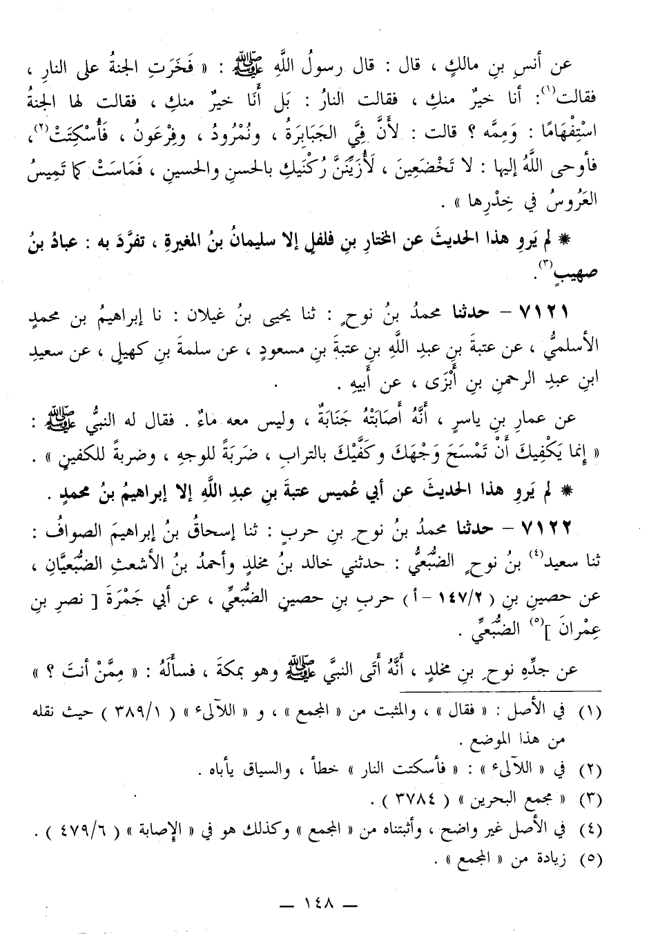 7122 - حَدَّثَنَا مُحَمَّدُ بْنُ نُوحِ بْنِ حَرْبٍ، ثَنَا إِسْحَاقُ بْنُ إِبْرَاهِيمَ الصَّوَّافُ، ثَنَا سَعِيدُ بْنُ نُوحٍ الضُّبَعِيُّ، حَدَّثَنِي خَالِدُ بْنُ مَخْلَدٍ، وَأَحْمَدُ بْنُ الْأَشْعَثِ الضُّبَعِيَّانِ، عَنْ حُصَيْنِ بْنِ حَرْبِ بْنِ حُصَيْنٍ الضُّبَعِيِّ، عَنْ أَبِي جَمْرَةَ نَصْرِ بْنِ عِمْرَانَ الضُّبَعِيِّ، عَنْ جَدِّهِ نُوحِ بْنِ مَخْلَدٍ، أَنَّهُ أَتَى النَّبِيَّ صَلَّى اللهُ عَلَيْهِ وَسَلَّمَ وَهُوَ بِمَكَّةَ، فَسَأَلَهُ: «مِمَّنْ أَنْتَ؟» -[149]- قَالَ: أَنَا مِنْ بَنِي ضُبَيْعَةَ بْنِ رَبِيعَةَ، فَقَالَ النَّبِيُّ صَلَّى اللهُ عَلَيْهِ وَسَلَّمَ: «§خَيْرُ رَبِيعَةَ عَبْدُ الْقَيْسِ، ثُمَّ الْحَيُّ الَّذِي أَنْتَ مِنْهُمْ» ، وأَبْضَعَ مَعَهُ فِي جَيْشٍ إِلَى الْيَمَنِ «