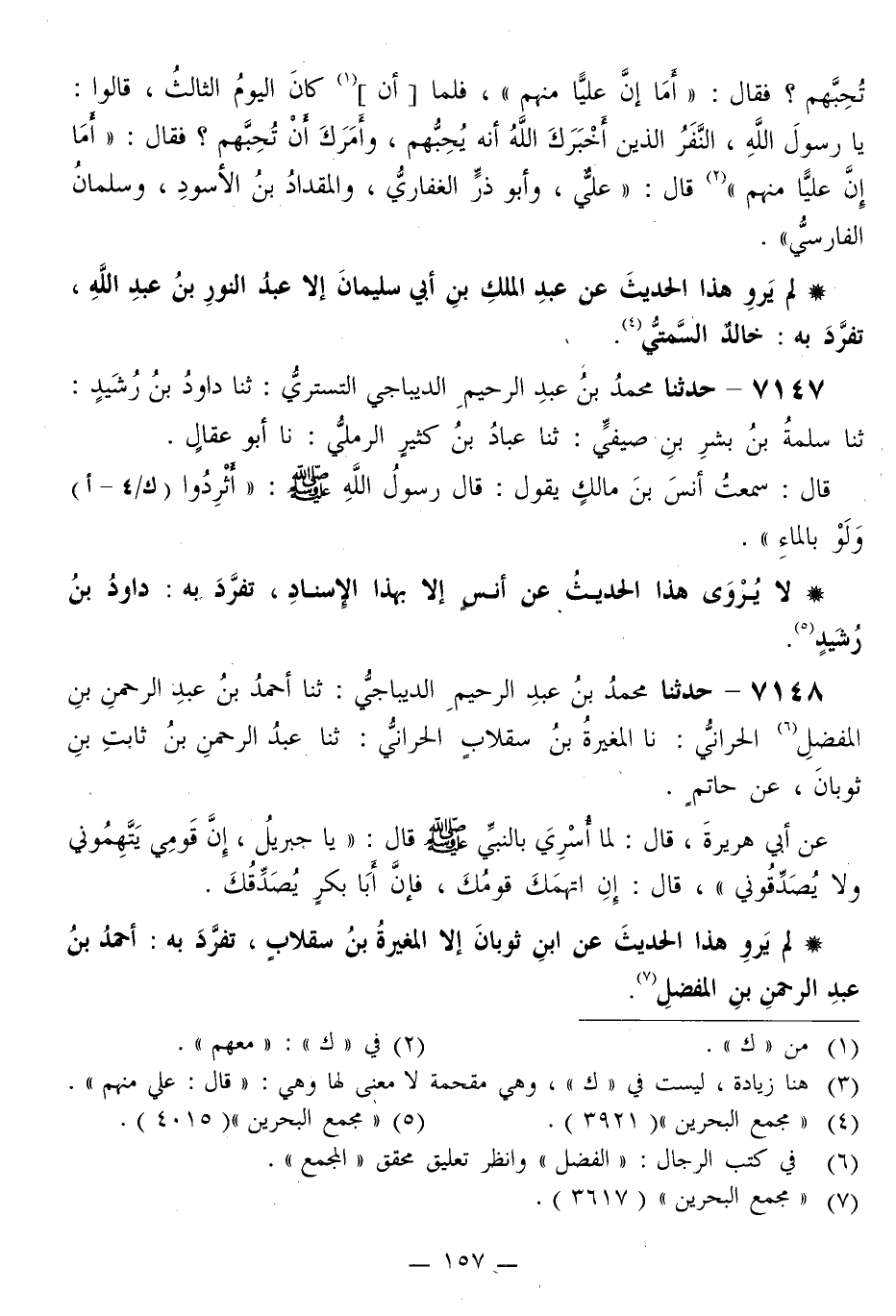 7148 - حَدَّثَنَا مُحَمَّدُ بْنُ عَبْدِ الرَّحِيمِ الدِّيباجِيُّ، ثَنَا أَحْمَدُ بْنُ عَبْدِ الرَّحْمَنِ بْنِ الْمُفَضَّلِ الْحَرَّانِيُّ، نَا الْمُغِيرَةُ بْنُ سَقْلَابٍ الْحَرَّانِيُّ، ثَنَا عَبْدُ الرَّحْمَنِ بْنُ ثَابِتِ بْنِ ثَوْبَانَ، عَنْ حَاتِمٍ، عَنْ أَبِي هُرَيْرَةَ قَالَ: لَمَّا أُسْرِيَ بِالنَّبِيِّ صَلَّى اللهُ عَلَيْهِ وَسَلَّمَ قَالَ: «§يَا جِبْرِيلُ، إِنَّ قَوْمِي يَتَّهِمُونِي وَلَا يُصَدِّقُوني» قَالَ: إِنِ اتَّهَمَكَ قَوْمُكَ، فَإِنَّ أَبَا بَكْرٍ يُصَدِّقُكَ «