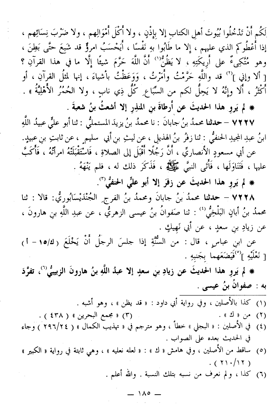 7228 - حَدَّثَنَا مُحَمَّدُ بْنُ جَابَانَ، وَمُحَمَّدُ بْنُ الْفَرَجِ الْجُنْدَيْسَابُورِيُّ، قَالَا: ثَنَا مُحَمَّدُ بْنُ أَبَانَ الْبَلْخِيُّ، ثَنَا صَفْوَانُ بْنُ عِيسَى الزُّهْرِيُّ، عَنْ عَبْدِ اللَّهِ بْنِ هَارُونَ، عَنْ زِيَادِ بْنِ سَعْدٍ، عَنْ أَبِي نَهِيكٍ، عَنِ ابْنِ عَبَّاسٍ قَالَ: «§مِنَ السُّنَّةِ إِذَا جَلَسَ الرَّجُلُ أَنْ يَخْلَعَ نَعْلَيْهِ فَيَضَعَهُمَا بِجَنْبِهِ»