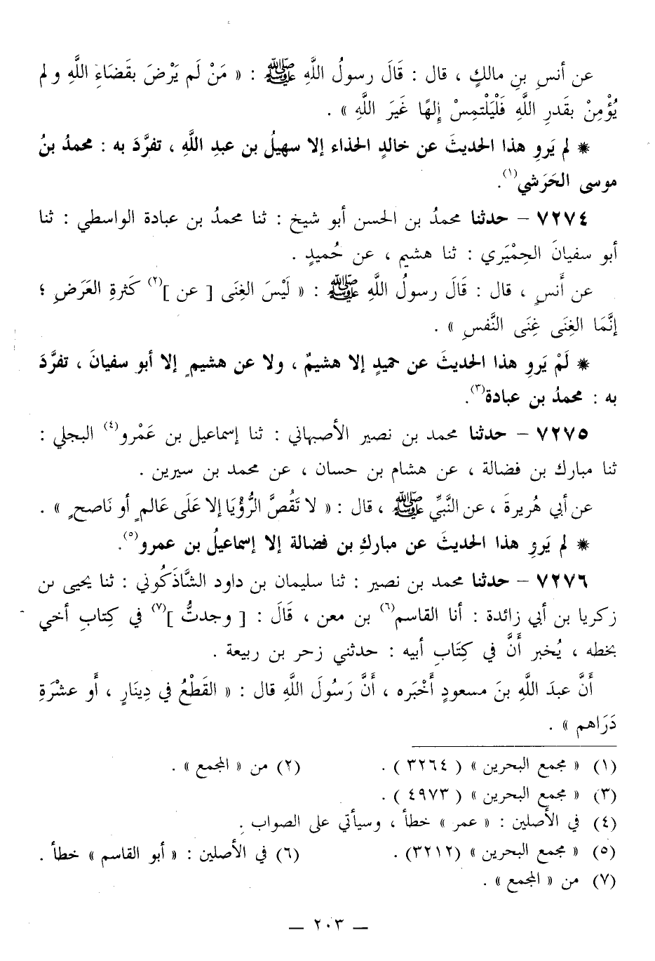 7274 - حَدَّثَنَا مُحَمَّدُ بْنُ الْحَسَنِ أَبُو شَيْخٍ، ثَنَا مُحَمَّدُ بْنُ عُبَادَةَ الْوَاسِطِيُّ، ثَنَا أَبُو سُفْيَانَ الْحِمْيَرِيُّ، ثَنَا هُشَيْمٌ، عَنْ حُمَيْدٍ، عَنْ أَنَسٍ قَالَ: قَالَ رَسُولُ اللَّهِ صَلَّى اللهُ عَلَيْهِ وَسَلَّمَ: «§لَيْسَ الْغِنَى عَنْ كَثْرَةِ الْعَرَضِ، إِنَّمَا الْغِنَى غِنَى النَّفْسِ»