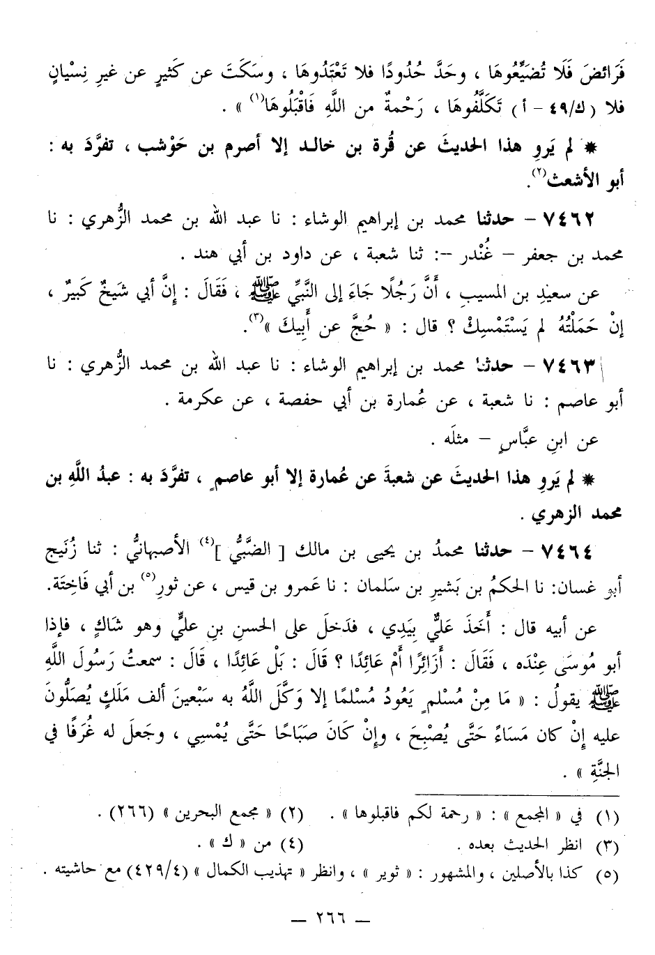 7463 - حَدَّثَنَا مُحَمَّدُ بْنُ إِبْرَاهِيمَ الْوَشَّاءُ، نَا عَبْدُ اللَّهِ بْنُ مُحَمَّدٍ الزُّهْرِيُّ، نَا أَبُو عَاصِمٍ، نَا شُعْبَةُ، عَنْ عُمَارَةَ بْنِ أَبِي حَفْصَةَ، عَنْ عِكْرِمَةَ، عَنِ ابْنِ عَبَّاسٍ، مِثْلَهُ «